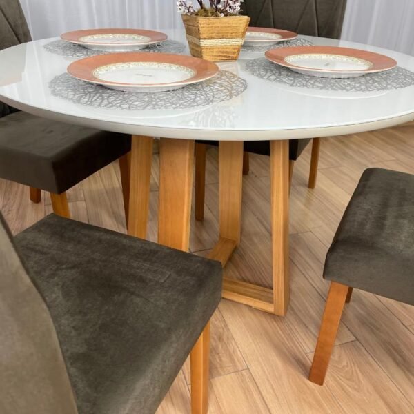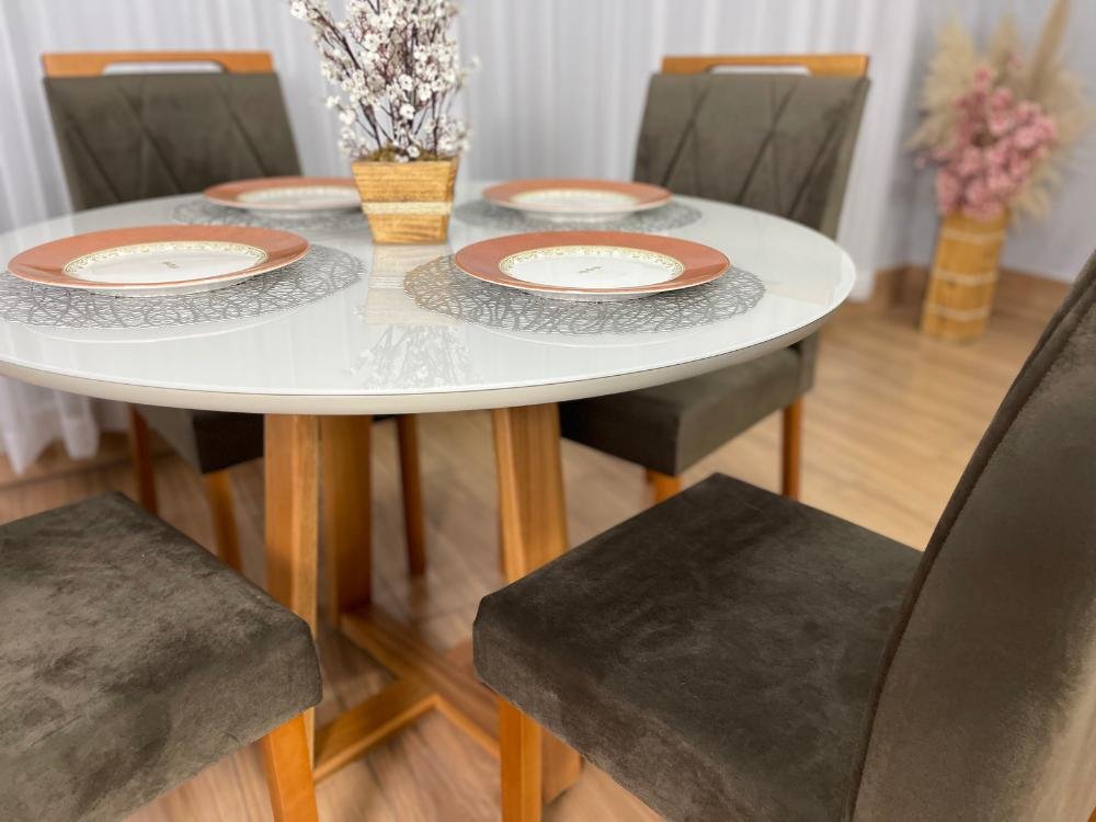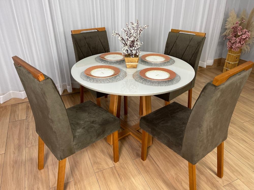 Mesa de Jantar Bali 1.10×1.10 Circular Com 4 Cadeiras Isa – Minas Plac /Ouro Decor