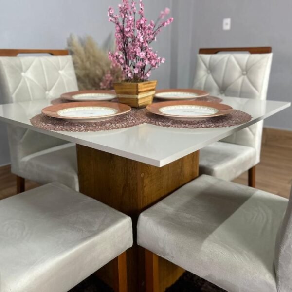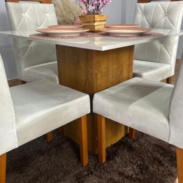 Mesa de Jantar Dakota 90×90 c/4 Cadeiras Jasmim – Cinamomo/Off White/Bege veludo