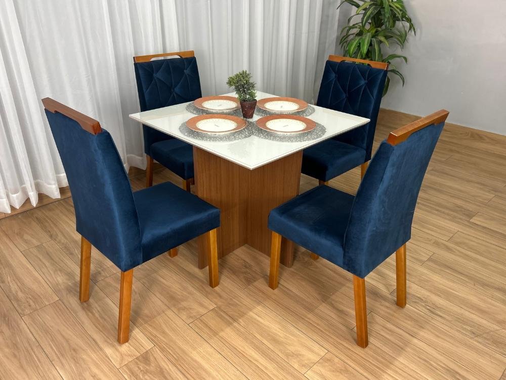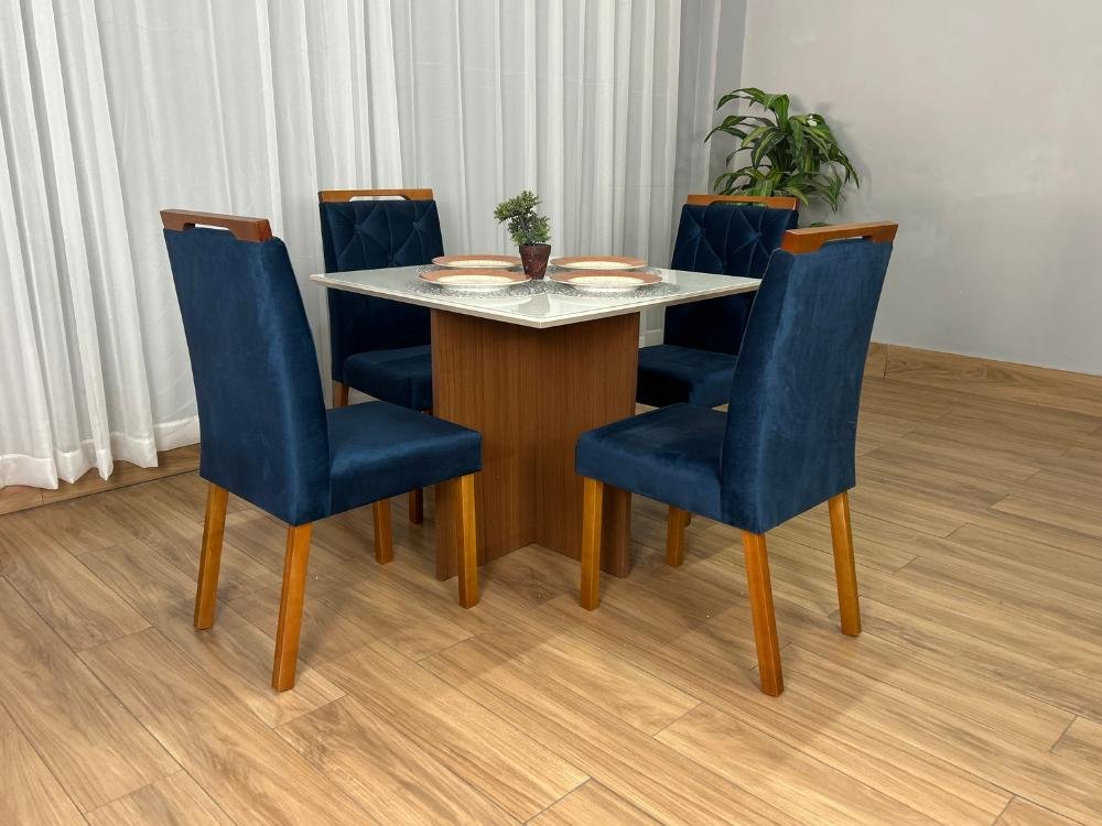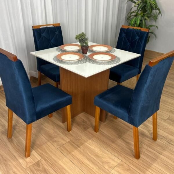Mesa de Jantar Helo 0.90×0.90 Com 4 Cadeiras Londres – Polimam/ Ouro Decor
