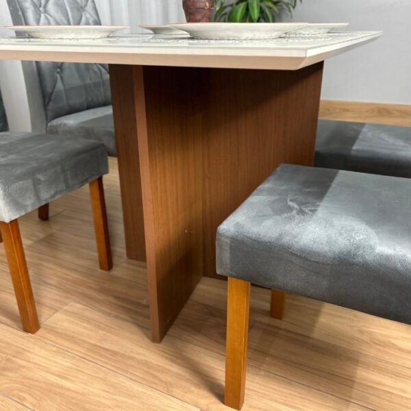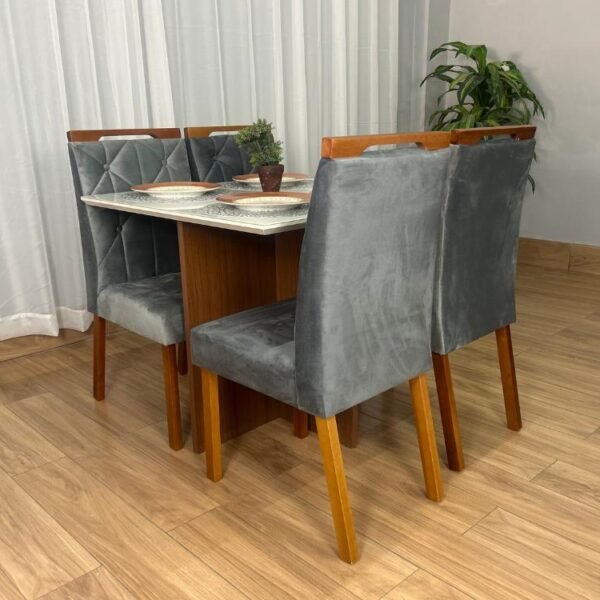 Mesa de Jantar Helo 0.90×0.90 Com 4 Cadeiras Londres – Polimam/ Ouro Decor