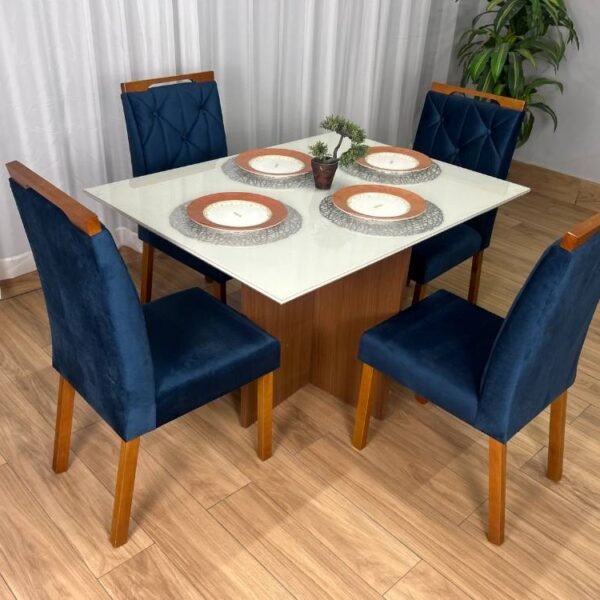 Mesa de Jantar Helo 1.20×0.90 Com 4 Cadeiras Jasmim – Polimam/Ouro decor