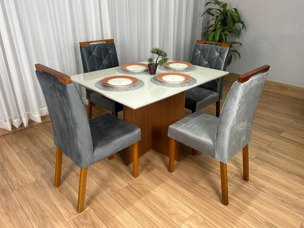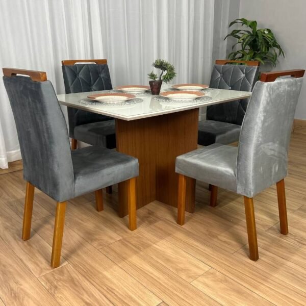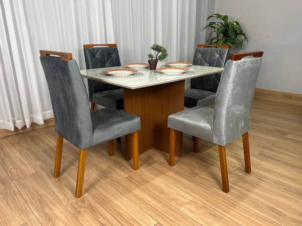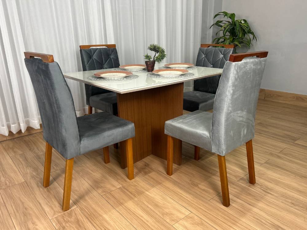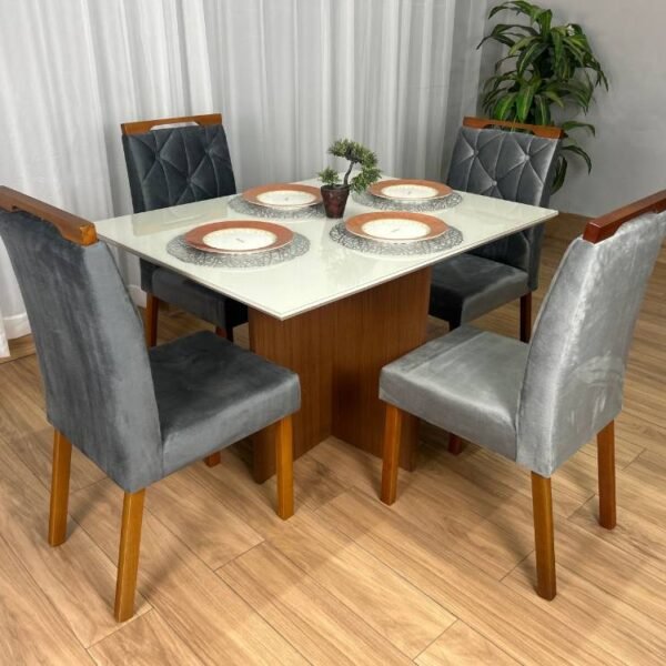 Mesa de Jantar Helo 1.20×0.90 Com 4 Cadeiras Jasmim – Polimam/Ouro decor
