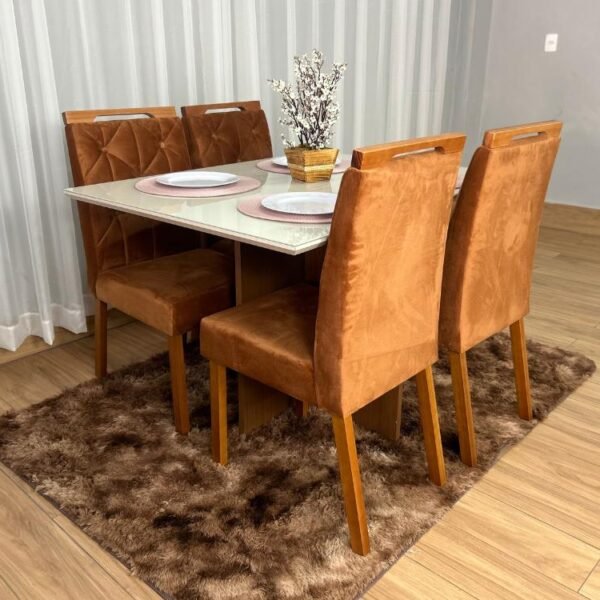 Mesa de Jantar Helo 1.20×0.90 Com 4 Cadeiras Jasmim – Polimam/Minas Chair