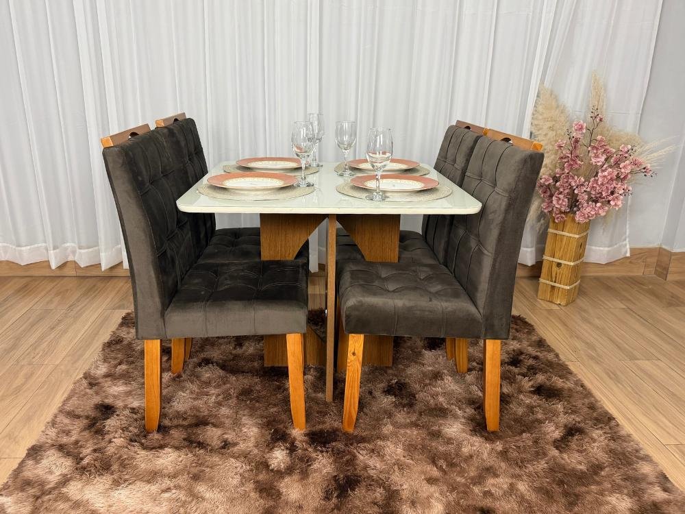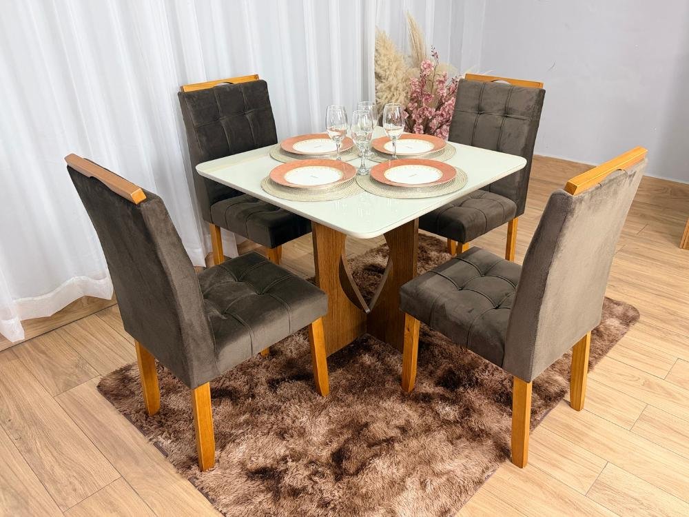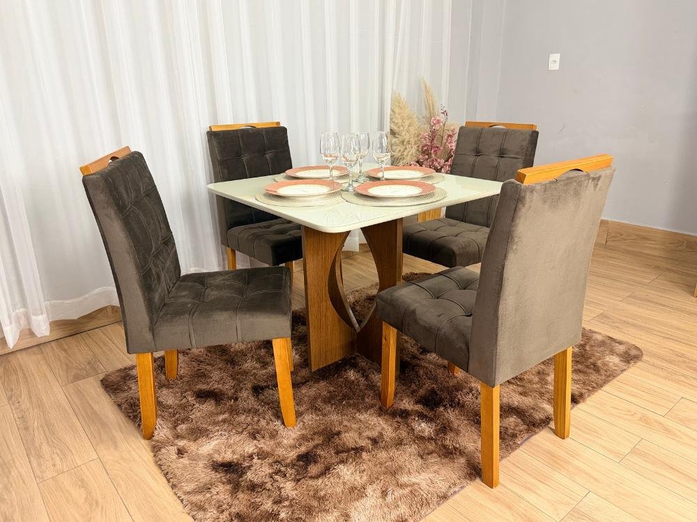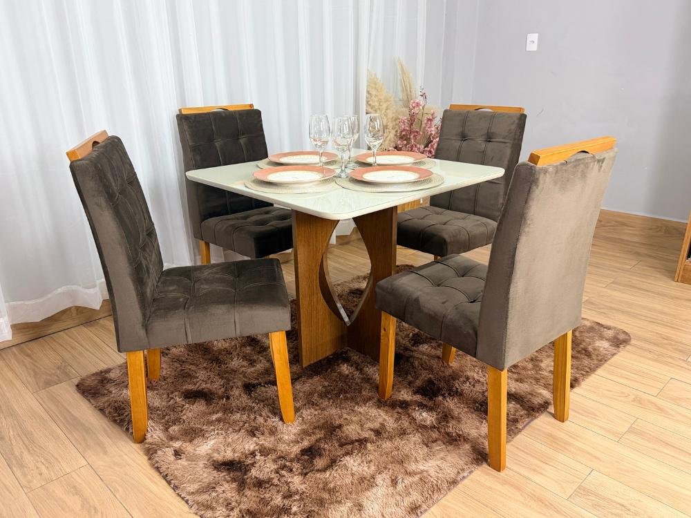Mesa de Jantar Madri 0.90×0.90 Com 4 Cadeiras Londres – Minas Plac