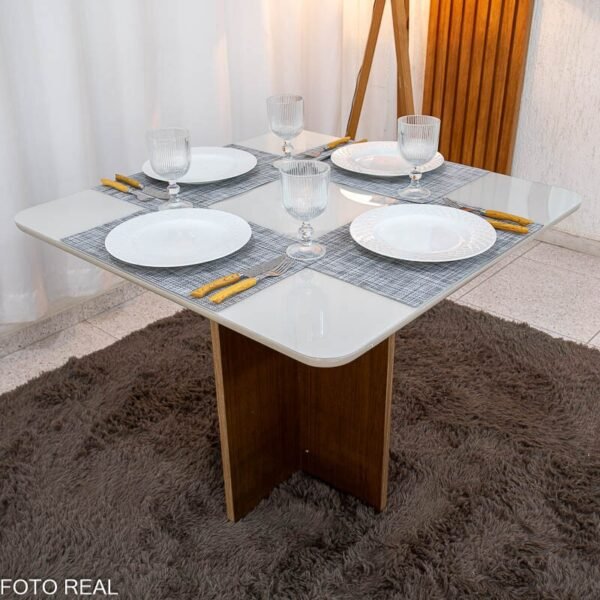 3{%%}Descrição{%%}Mesa de Jantar Moscou 90×90 Vidro Off/Base Cinamomo – Minas Plac