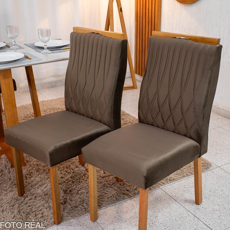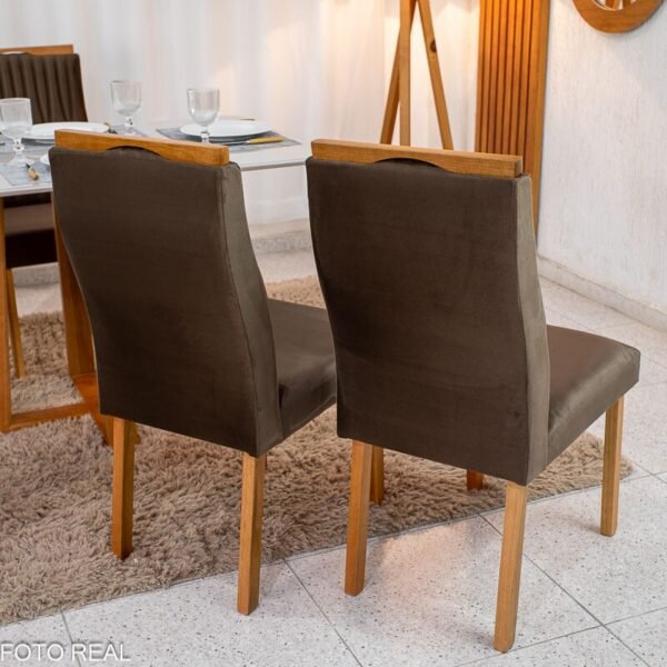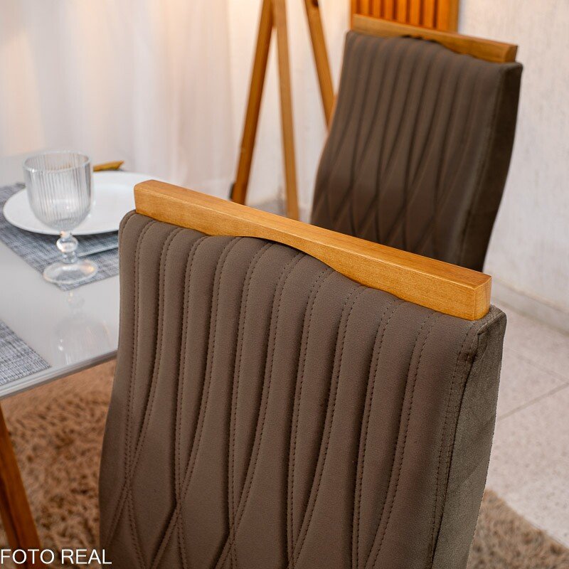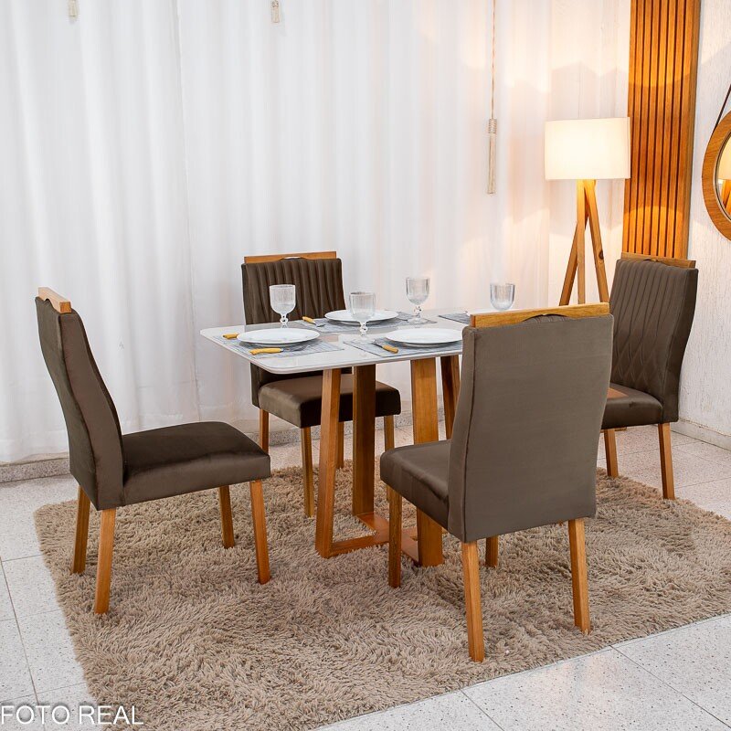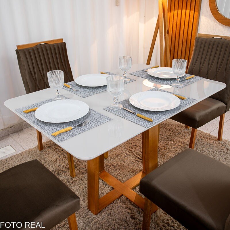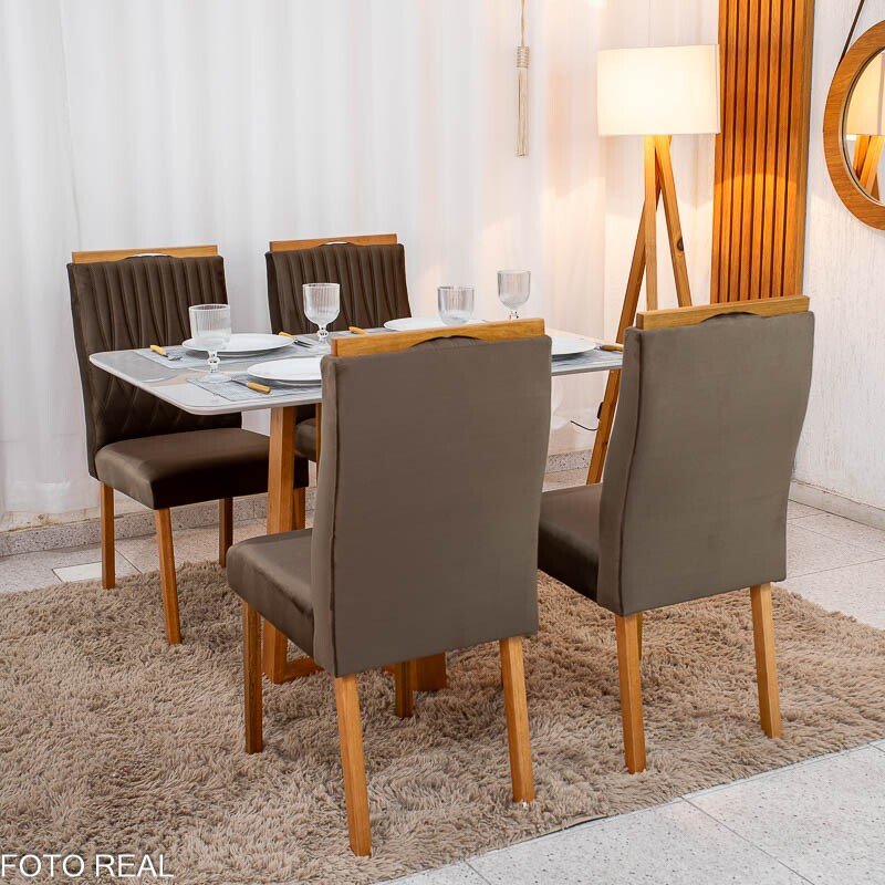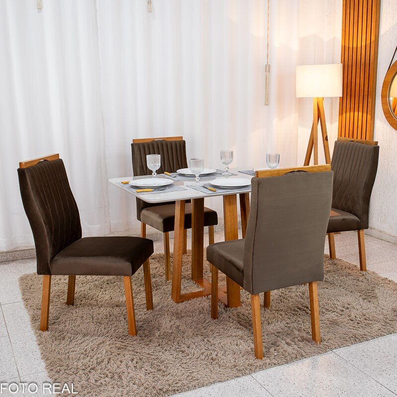 3{%%}Descrição{%%}Mesa de Jantar Pedro 120×80 Mel Vidro Off + 4 Cad. Genova Veludo Marrom 509 Madeira Art Assento – Entregue Montada
