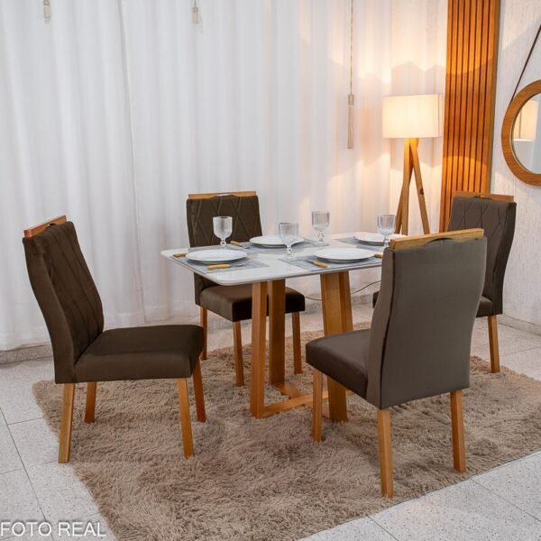 3{%%}Descrição#Como Montar{%%}Mesa de Jantar Pedro 120×80 Vidro Off/Base Madeira + 4 Cad. Lisboa Veludo Marrom 509 Madeira Art Assento – Entregue Montada