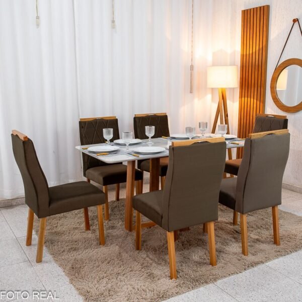 3{%%}Descrição#Como Montar{%%}Mesa de Jantar Pedro 160×80 Vidro Off/Base Madeira + 6 Cad. Lisboa Veludo Marrom 509 Madeira Art Assento – Entregue Montada