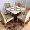 Mesa de Jantar Pedro 90×90 Com 4 Cadeiras Gênova – Cinamomo/Off White/Bege Veludo