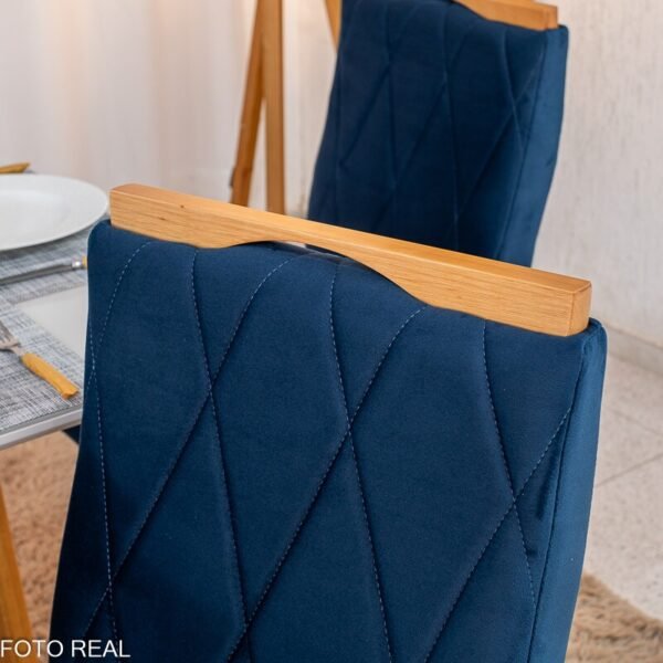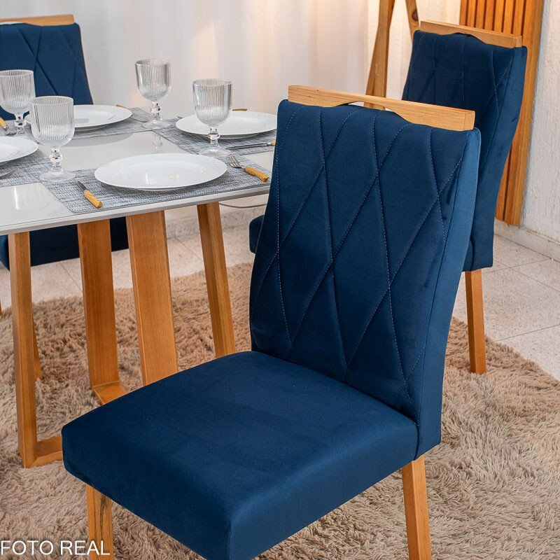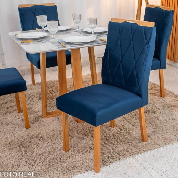 3{%%}Descrição#Como Montar{%%}Mesa de Jantar Pedro 90×90 Vidro Off/Base Madeira + 4 Cad. Lisboa Veludo Azul 503 Madeira Art Assento – Entregue Montada