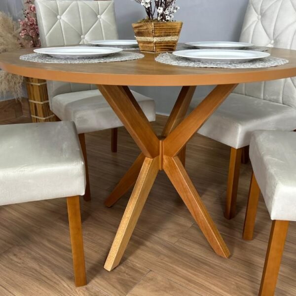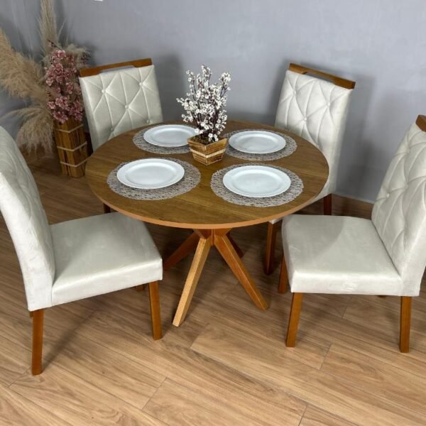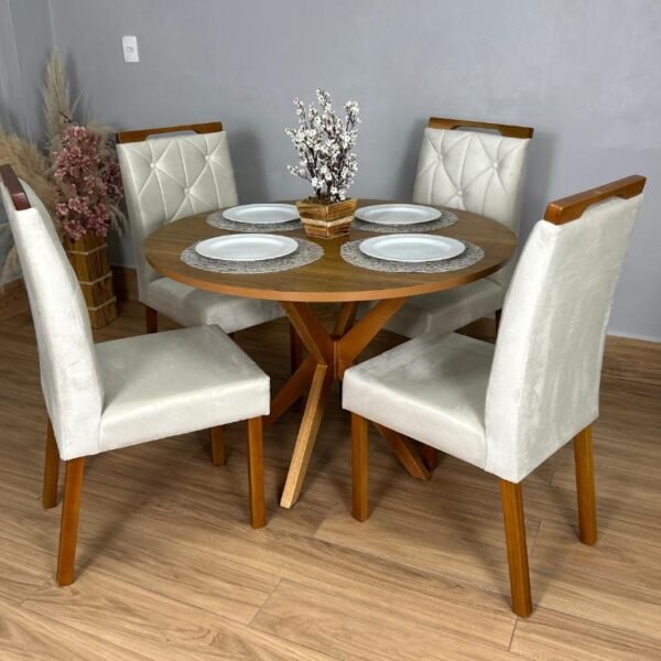 Mesa de Jantar Simpatia 1.08×1.08 Circular Com 4 cadeiras Jasmim – Cinamomo/Bege