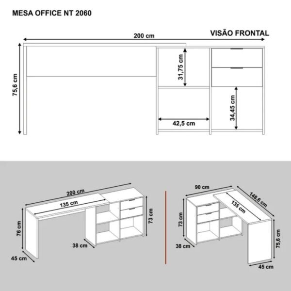 3{%%}Descrição#Shorts{%%}Mesa Office NT 2060 Larg. 2.00m Freijó 2 Gavetas – Notável