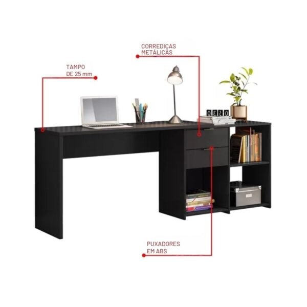 3{%%}Descrição#Shorts{%%}Mesa Office NT 2060 Larg. 2.00m Preto 2 Gavetas – Notável