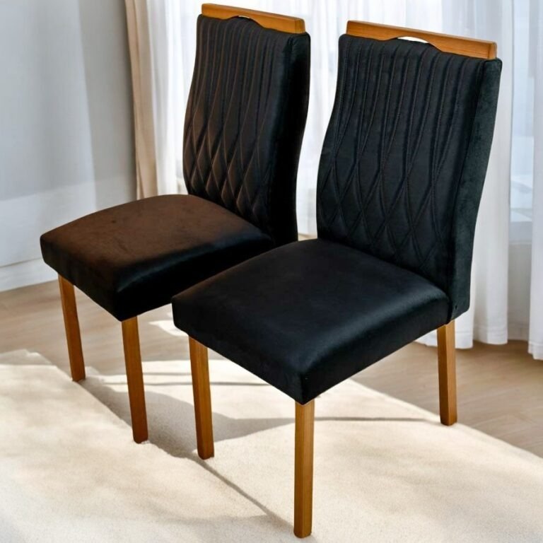 Mesa Sintonia (Tampo Maxi) 120 Amêndoa Clean/Off White com 4 Cadeiras Gênova Veludo Preto – LOPAS + ART ASSENTOS
