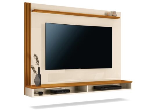 O Painel Davos vai deixar a sua sala completa e linda. O destaque fica por conta do acabamento ripado na lateral que proporcionam ao produto um toque super moderno. Possui amplo espaço para TV 55 polegadas e uma prateleira superior para os objetos decorativos e nichos para comportar seus eletrônicos.