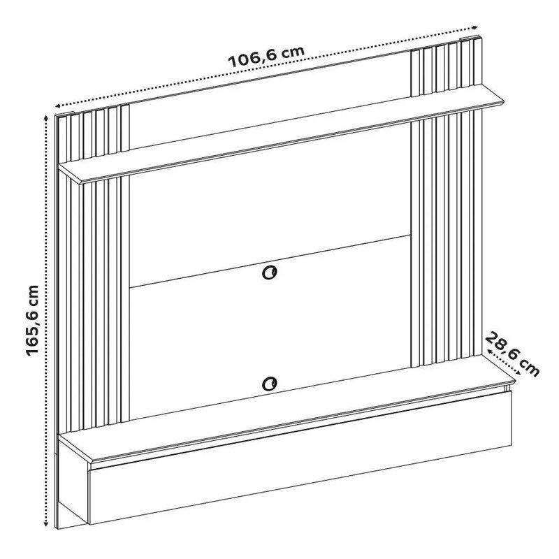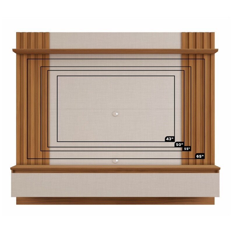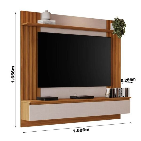 3{%%}Descrição{%%}Painel NT 1365 Larg. 1.60m Off/Freijó C/ Detalhe Ripado para TV até 65″ – Notável