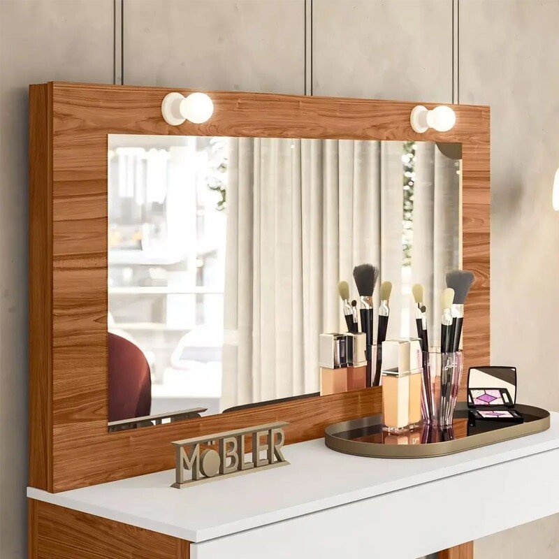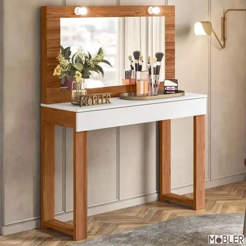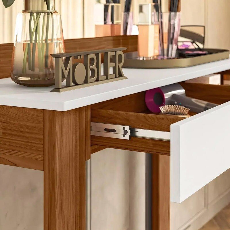 3{%%}Descrição{%%}Penteadeira Camarim Gala Larg. 1.10m Cinamomo/Branco – Mobler