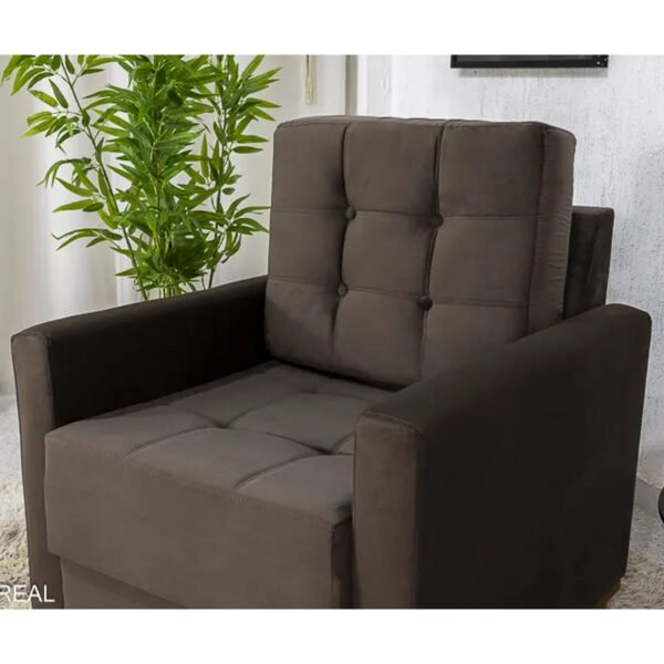 3{%%}Descrição{%%}Poltrona Áustria Veludo Marrom A17