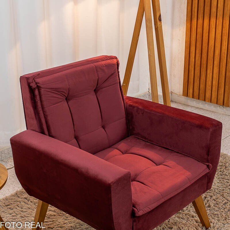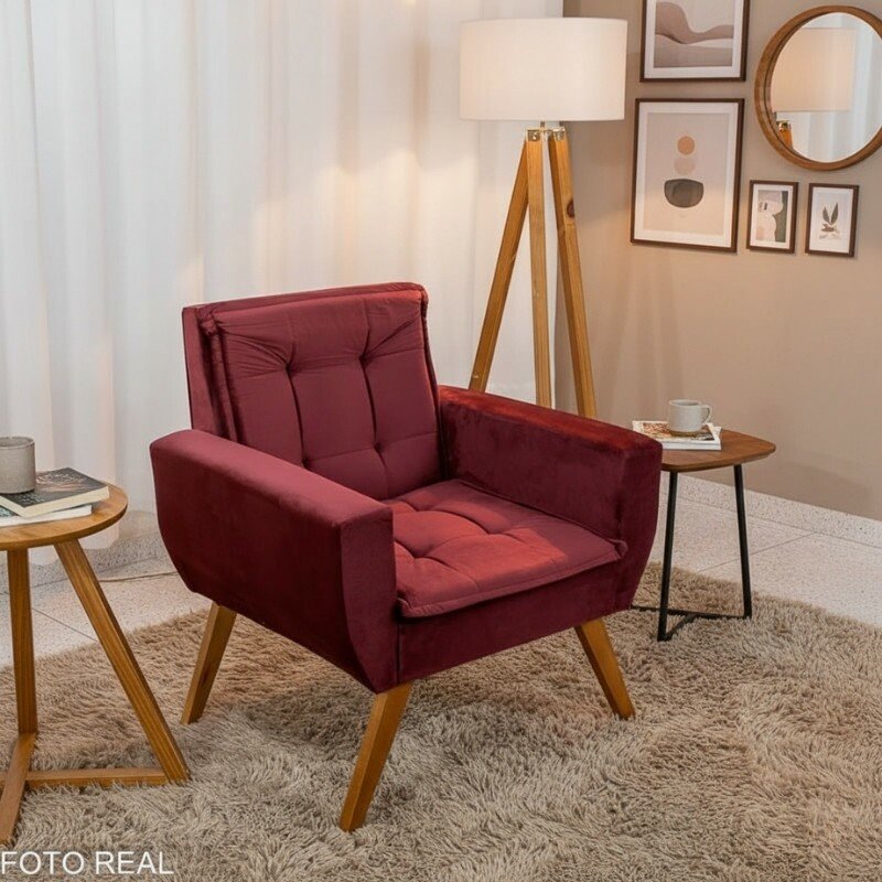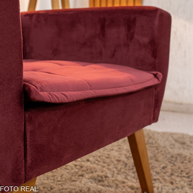 3{%%}Descrição{%%}Poltrona Camila Base Fixa Veludo Bordô