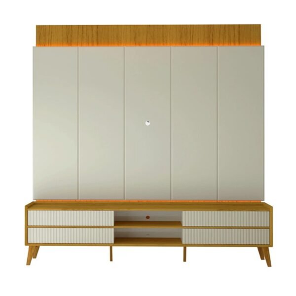 3{%%}Descrição{%%}Rack Magnífico 212 Larg. 2.18m + Painel Magnífico 220 Nature/Off C/LED e Detalhe Ripado – Gelius