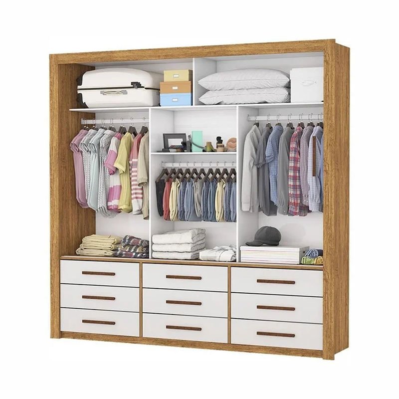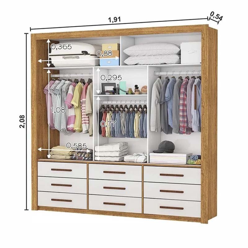 Roupeiro Anjos Cinamomo/Off 3 Portas 9 Gavetas C/ 1 Espelho Larg. 1.91m – Carioca Móveis
