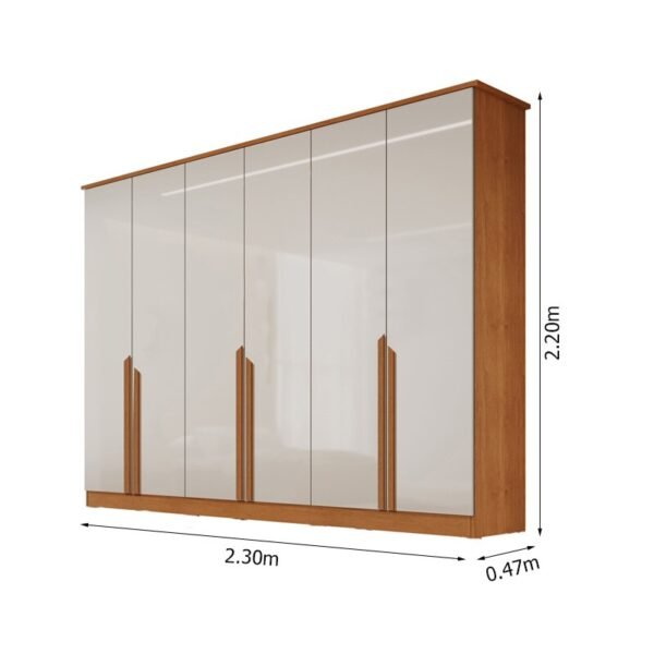 3{%%}Descrição{%%}Roupeiro Bianca 6 Portas Larg. 2.30m 100% MDF Nature/Off – Bianchi