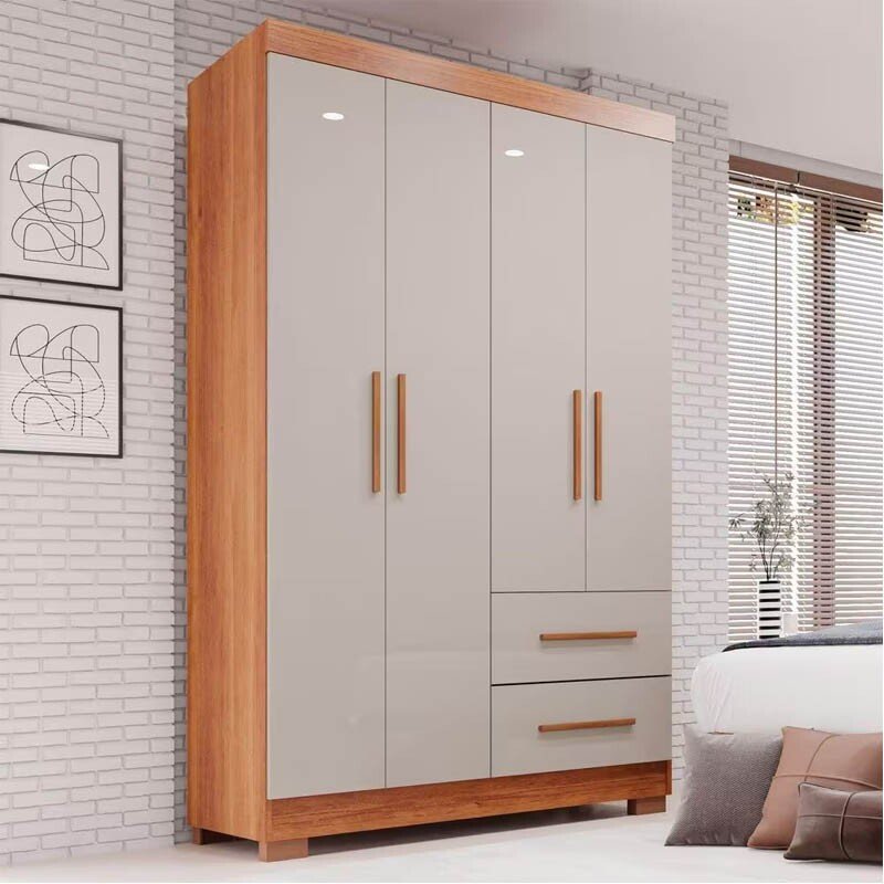 3{%%}Descrição{%%}Roupeiro Solteiro Estrela Cinamomo/Off 4 portas C/ Pés Larg. 1.00m – Sallêto