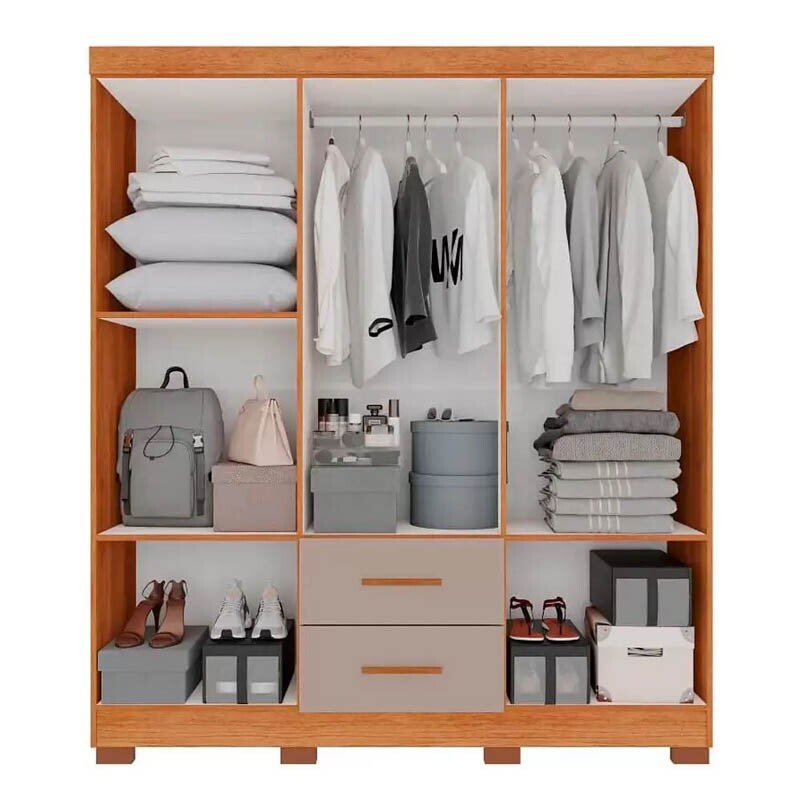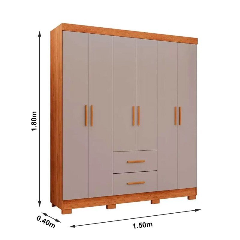 3{%%}Descrição{%%}Roupeiro Solteiro Estrela Cinamomo/Off 6 Portas 2 Gavetas C/ Pés Larg. 1.50m – Sallêto