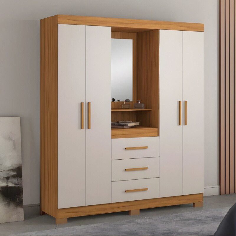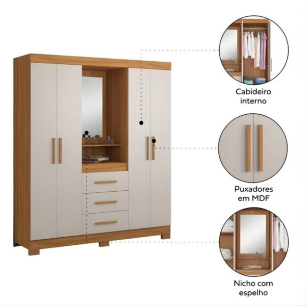 3{%%}Descrição{%%}Roupeiro Solteiro NT 5015 Larg. 1.61m Freijó/Off 4 portas 3 Gavetas C/Pés – Notável