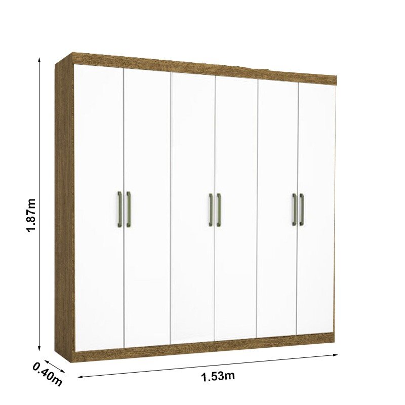 3{%%}Descrição{%%}Roupeiro Solteiro Recife Cinamomo/Branco 6 Portas 2 Gavetas C/Pés Larg. 1.53m – Carioca