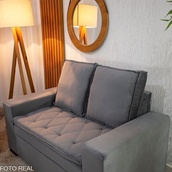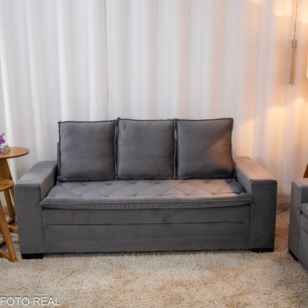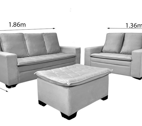 3{%%}Descrição{%%}Sofá 3 e 2 lugares França com Puff Veludo Cinza A15