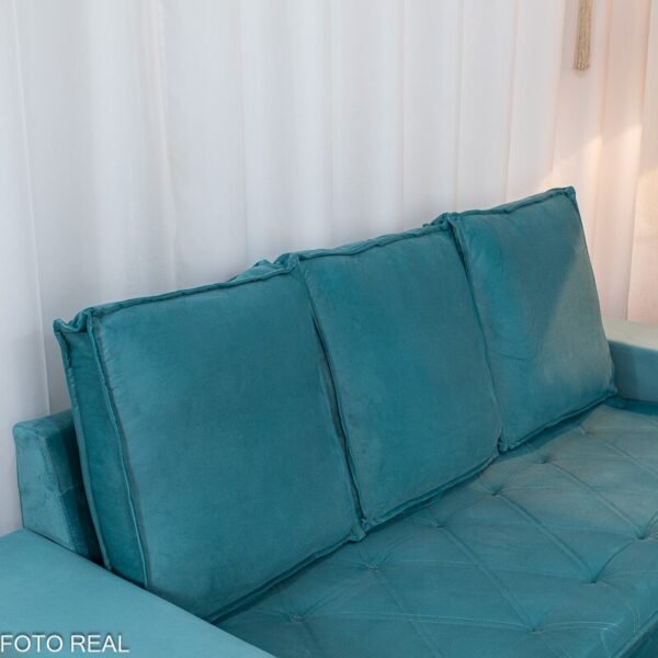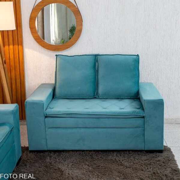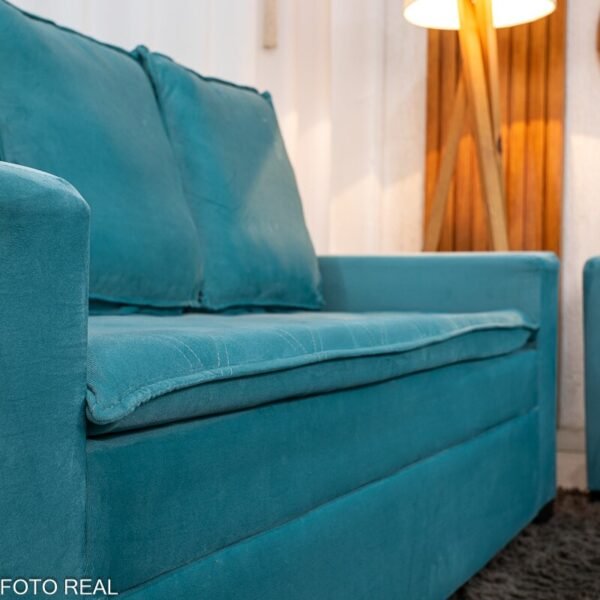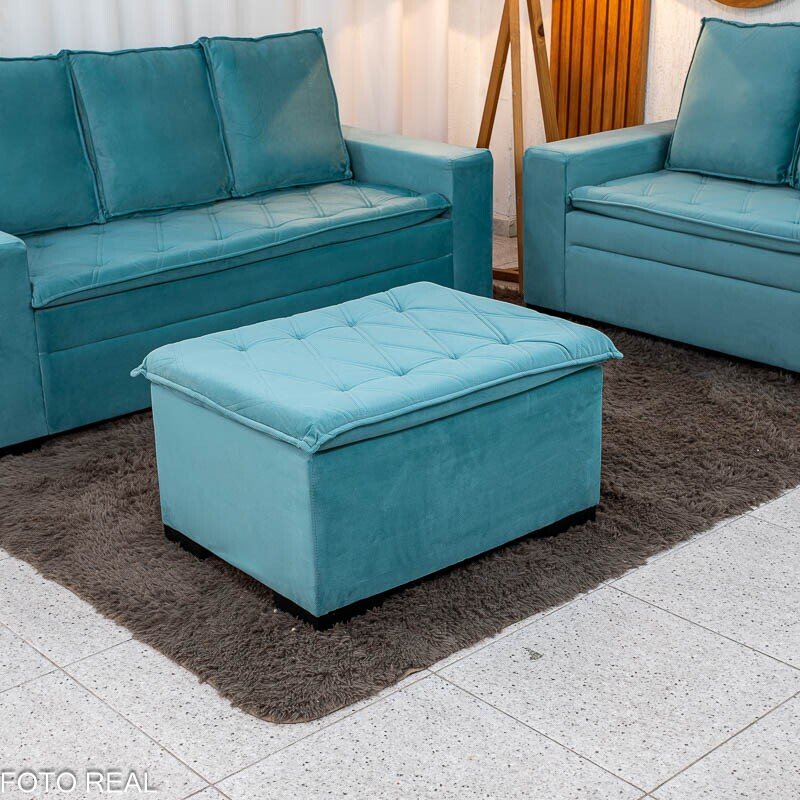 3{%%}Descrição{%%}Sofá 3 e 2 lugares França com Puff Veludo Verde A40