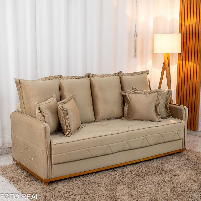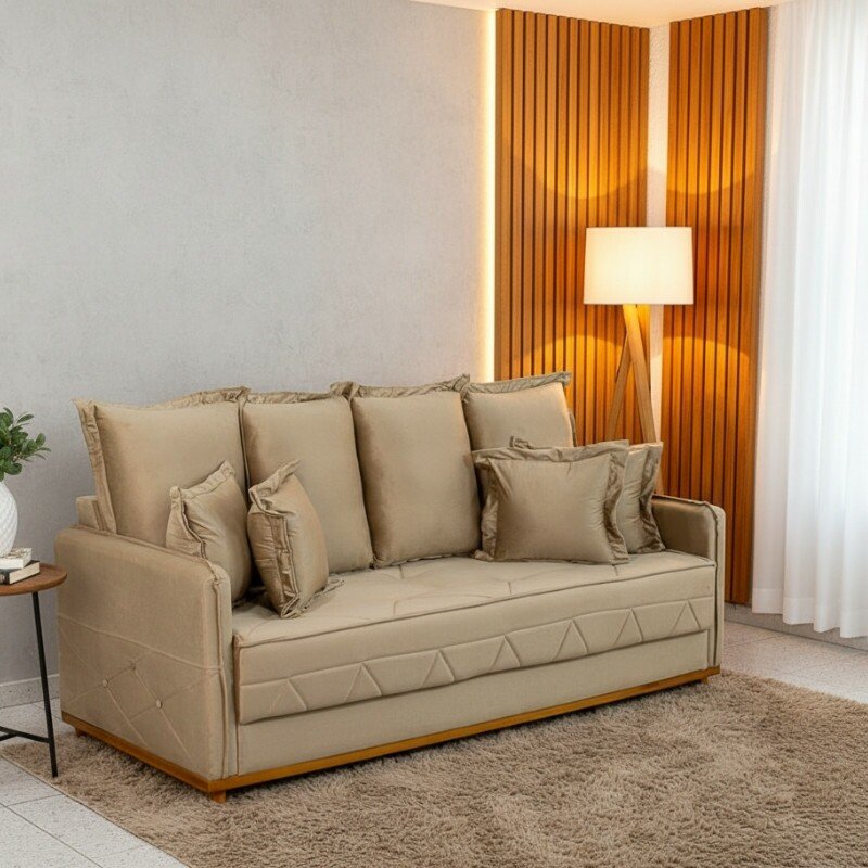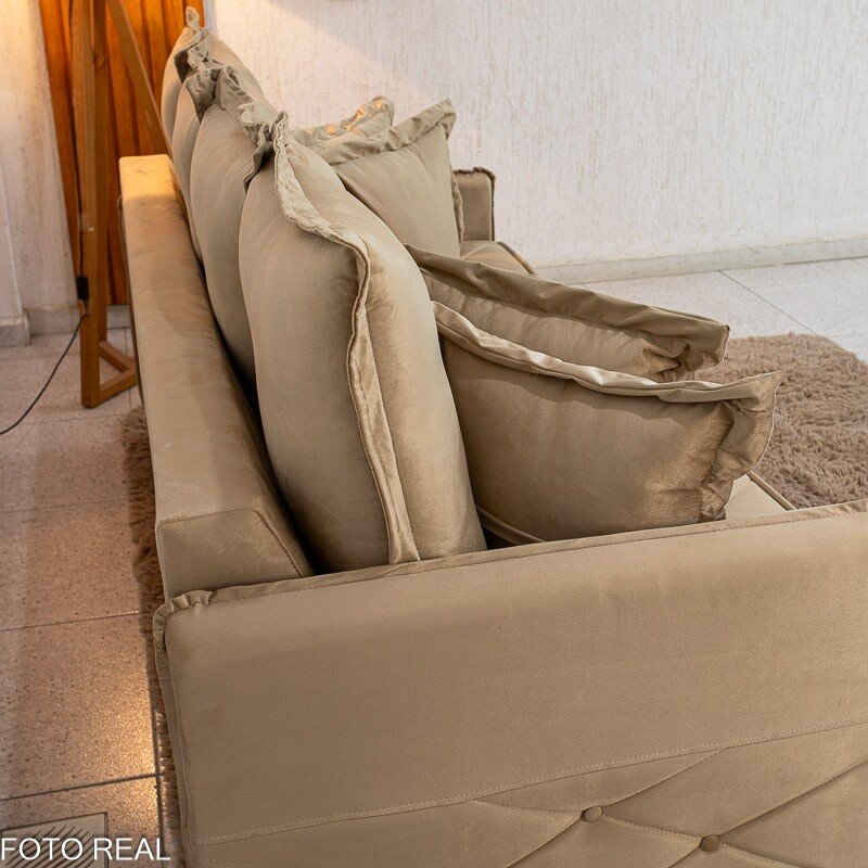3{%%}Descrição{%%}Sofá 3 Lug. Vican Larg. 2.00m Veludo Bege 5002 – Molas Bonnel