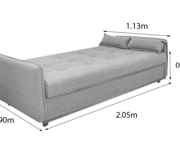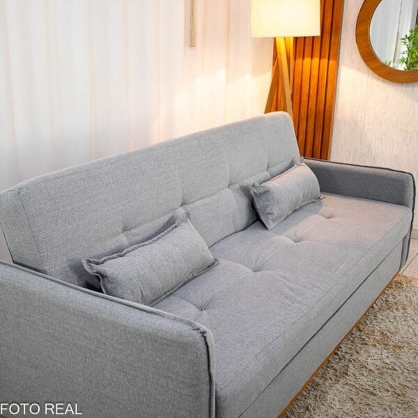 3{%%}Descrição{%%}Sofá Cama Ipanema com Baú Linho Cinza 2275 – Larg. 2.05m