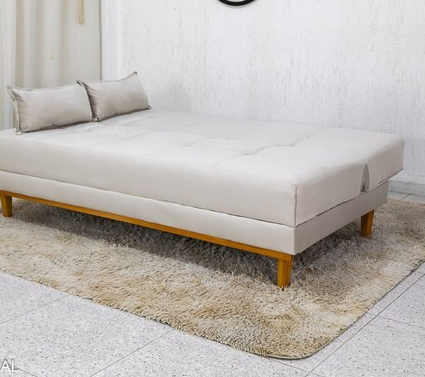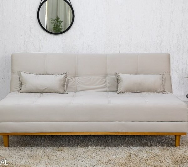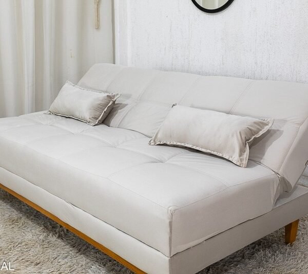 3{%%}Descrição{%%}Sofá Cama Madrid Veludo Bege 2269 Larg. 1.80m – Molas Bonnel