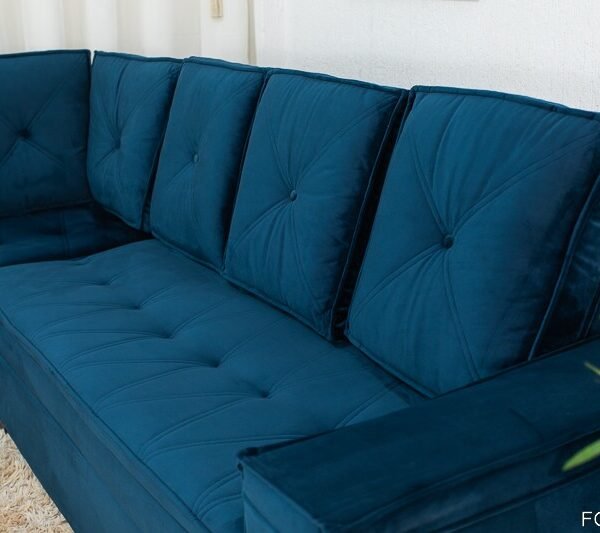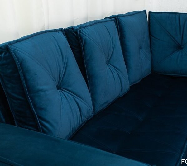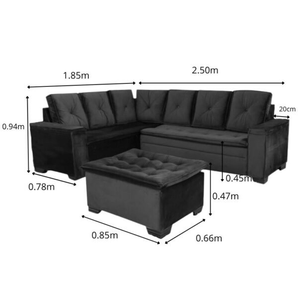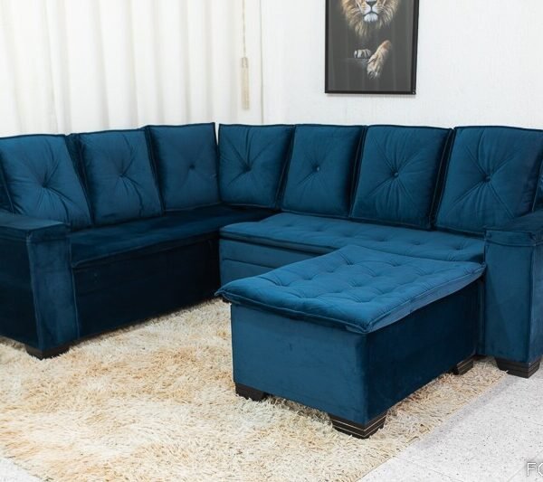 3{%%}Descrição{%%}Sofá Canto 5 lugares com Puff Alemanha Veludo Azul A16
