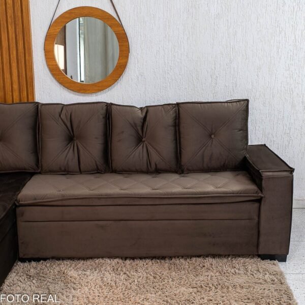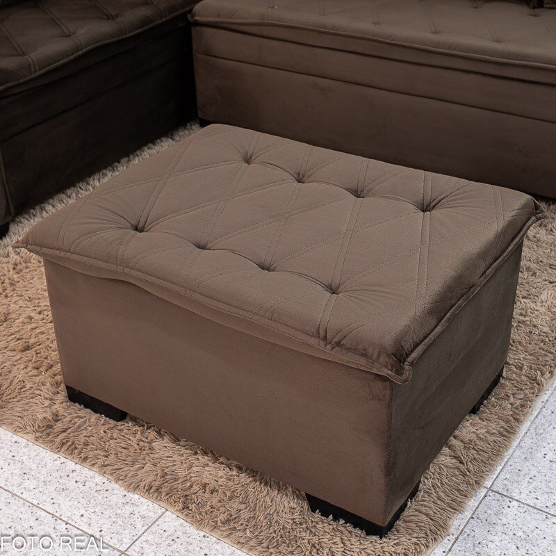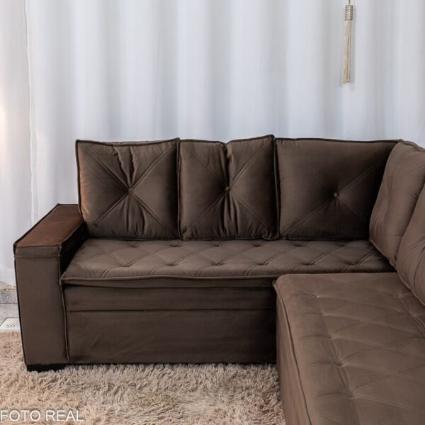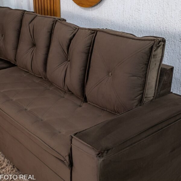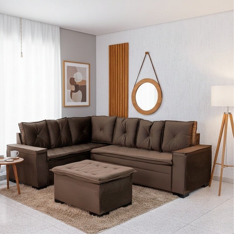 3{%%}Descrição{%%}Sofá Canto 5 lugares com Puff Alemanha Veludo Marrom A17