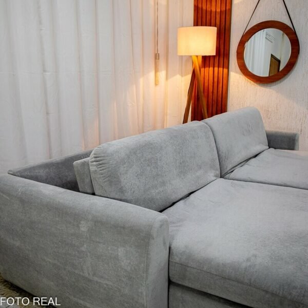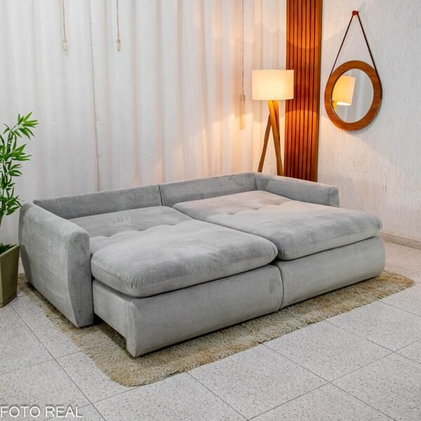 Esse modelo une conforto, praticidade e um visual elegante em um único produto. Com 2,30 metros de largura, ele acomoda bem até 4 pessoas e ainda vira uma cama espaçosa de 2,05×1,45m. ideal para receber visitas ou relaxar assistindo TV. Seu assento retrátil com pillow de 17cm e molas bonnel garante conforto mesmo por longas horas, e o encosto reclinável com almofadas soltas oferece aquele apoio extra para o corpo.