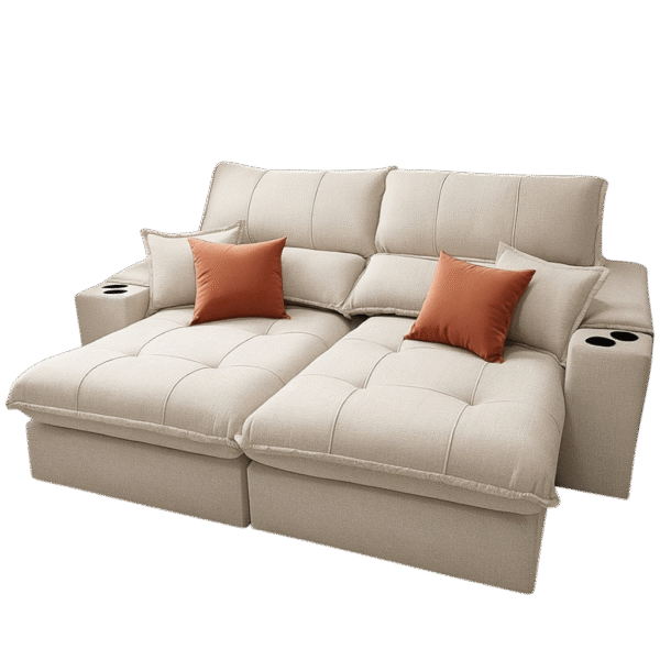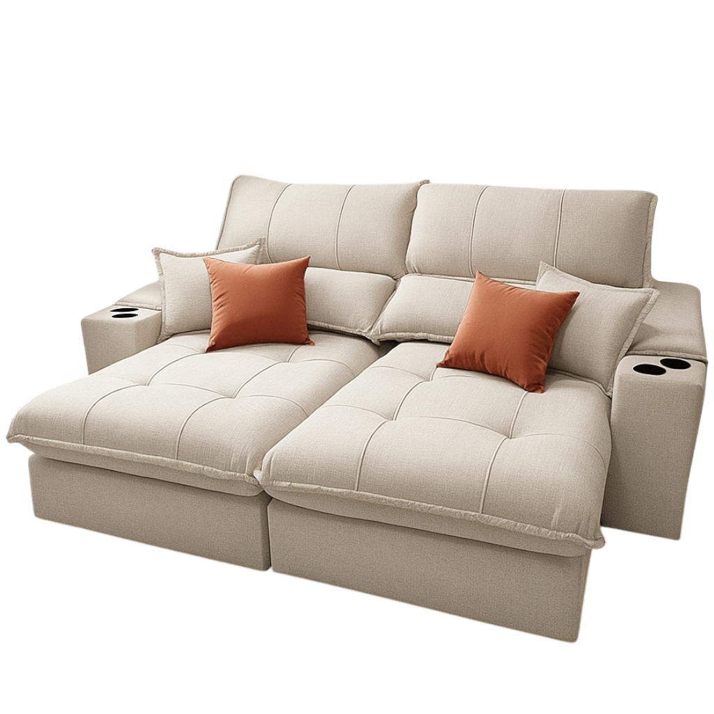 Sofá Retrátil e Reclinável Afrodite Slim 2,90 m Veludo Linho Bege 313 Confort 09 – ZARAT ESTOFADOS