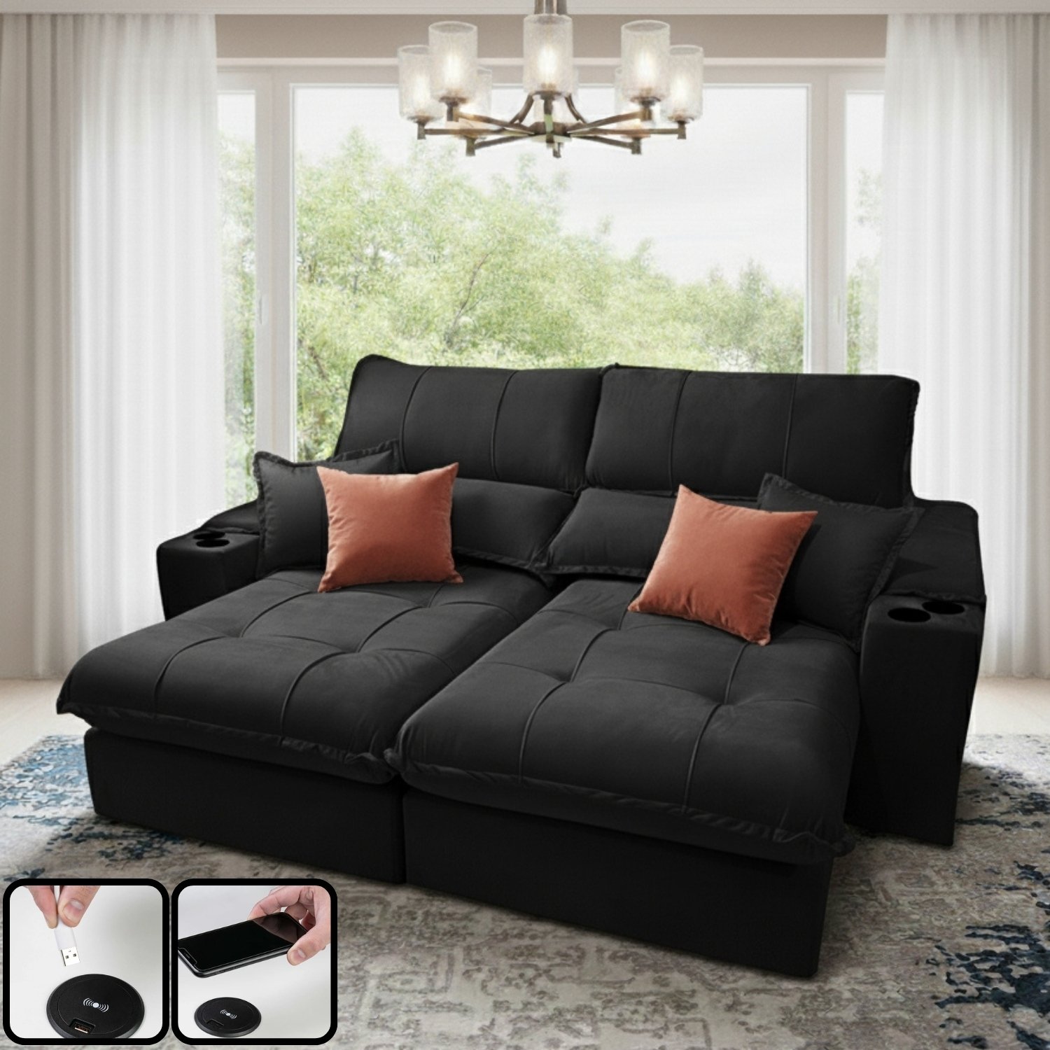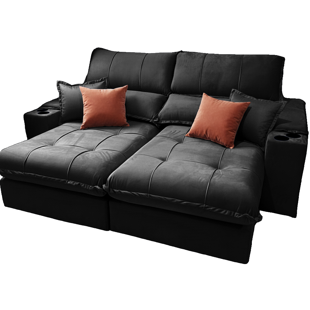 Sofá Retrátil e Reclinável Afrodite Slim 2,90 m Veludo Preto 111 – ZARAT ESTOFADOS
