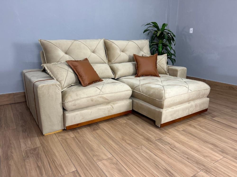 Sofá Retrátil e Reclinável Gran Bello 2.30m – Bege Veludo