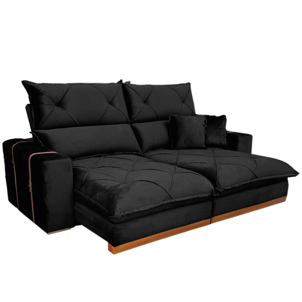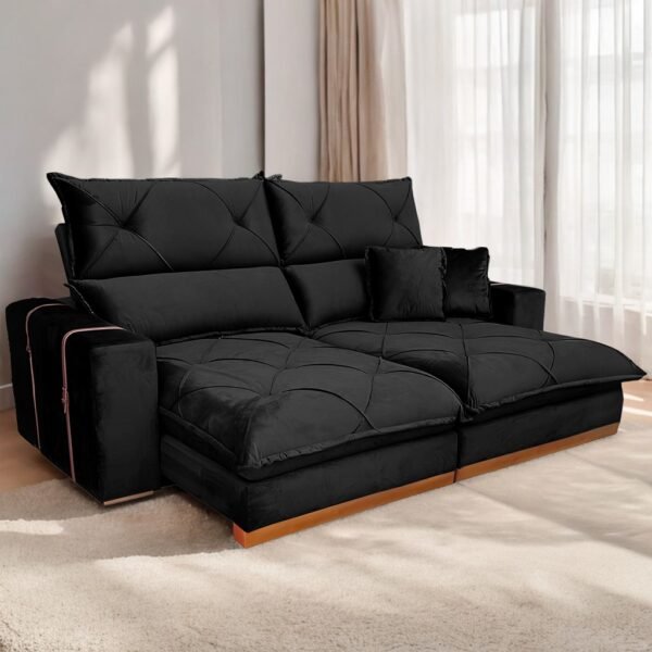 Sofá Retrátil e Reclinável Gran Bello 2,00 m Veludo Preto – QUINE ESTOFADOS
