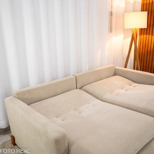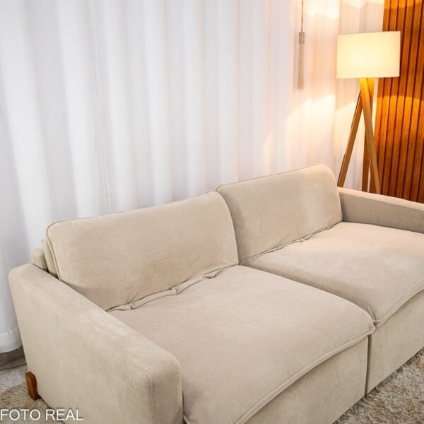 3{%%}Descrição{%%}Sofá Retrátil Luma 2.00m Veludo Premium Bege 37 – Sem Caixa