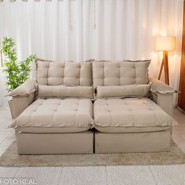 3{%%}Descrição{%%}Sofá Retrátil Luma 2.00m Veludo Premium Bege 37 – Sem Caixa