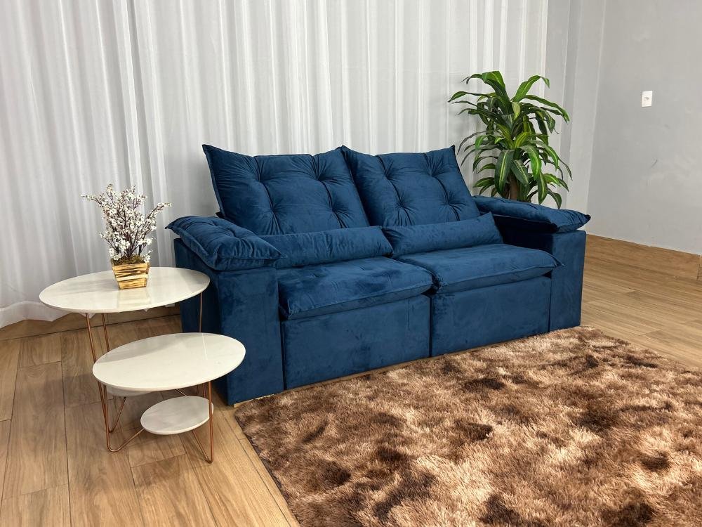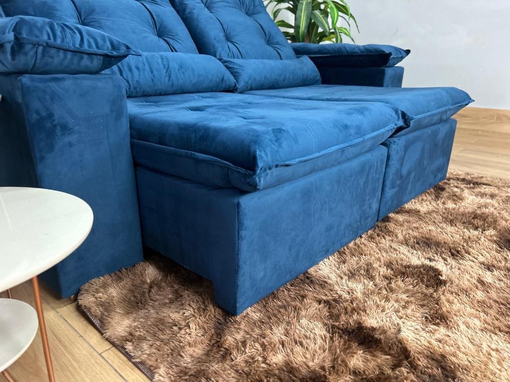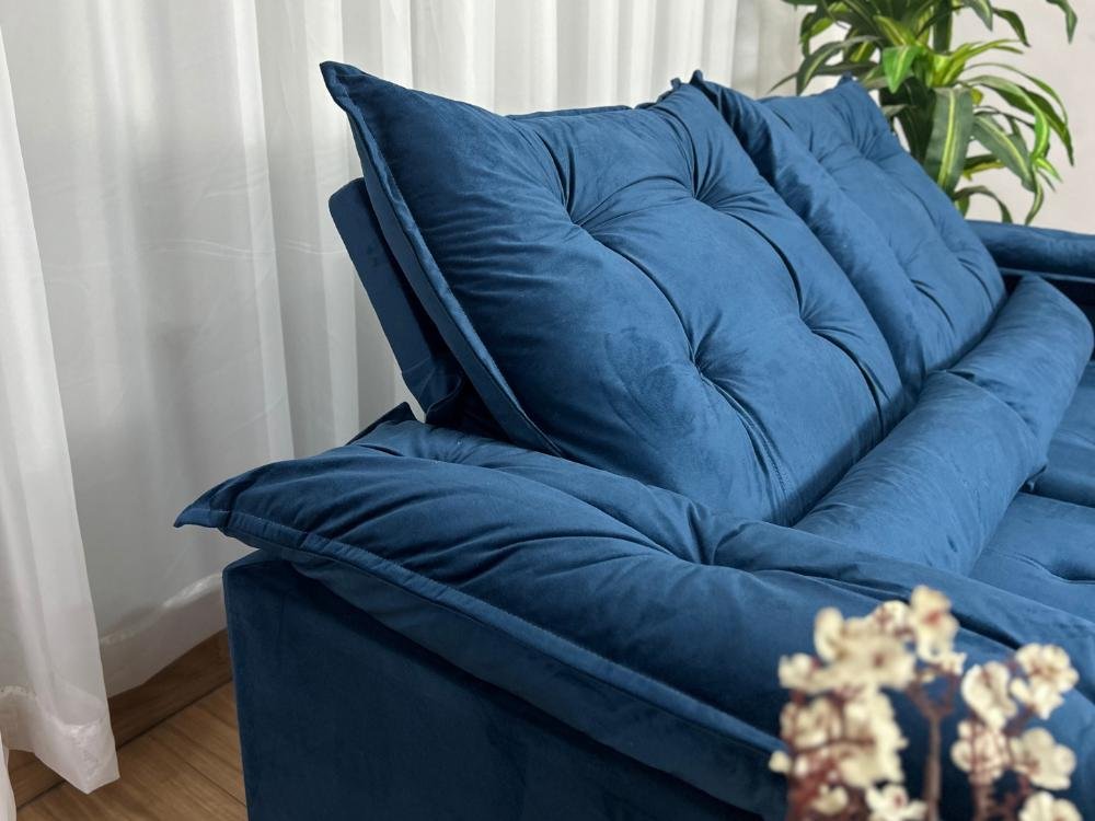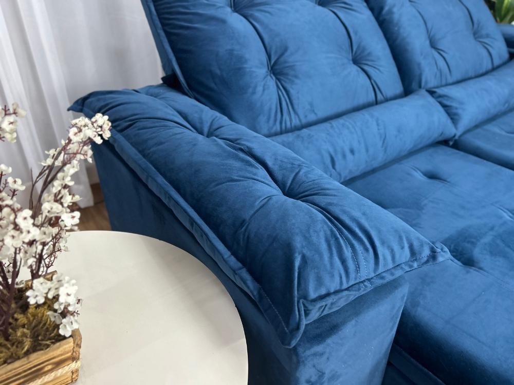 Sofá Retrátil Reclinável Atenas 2.00m – Azul Veludo