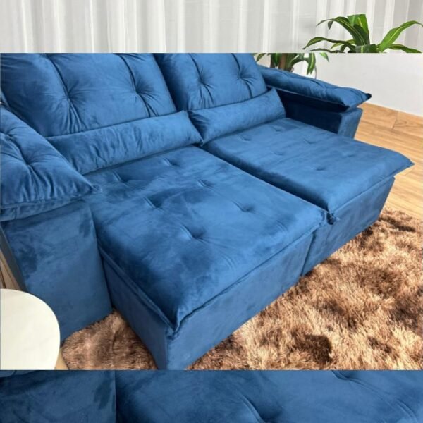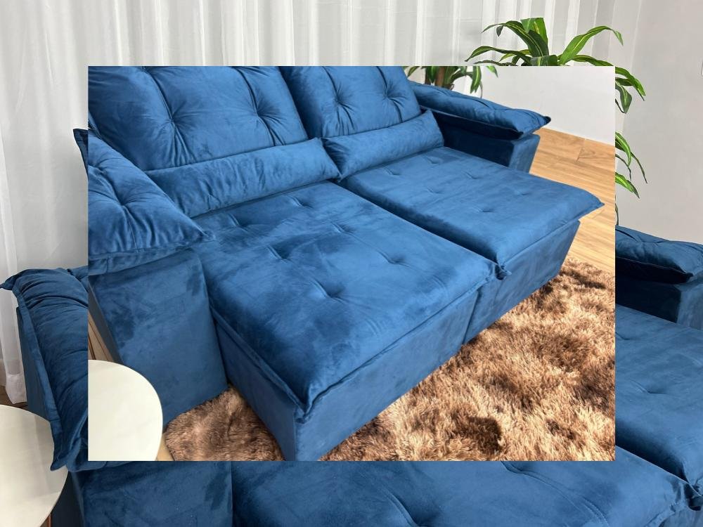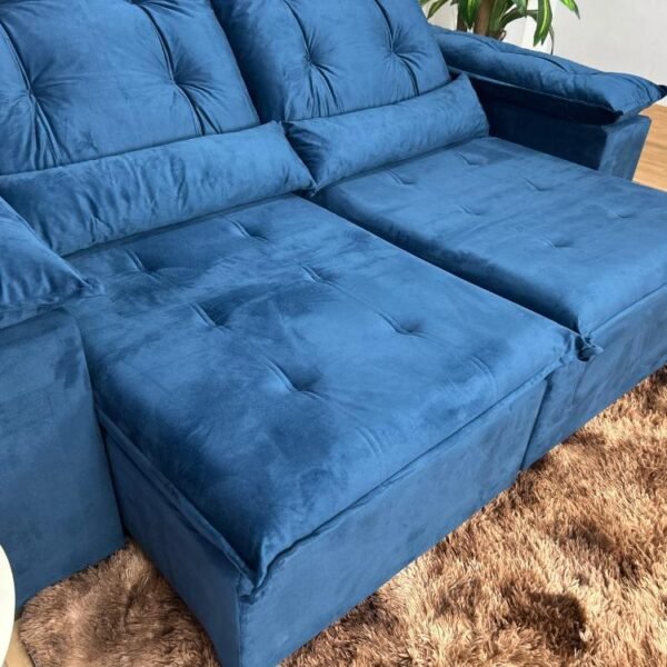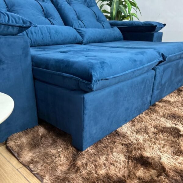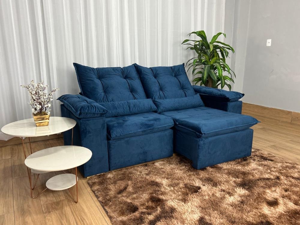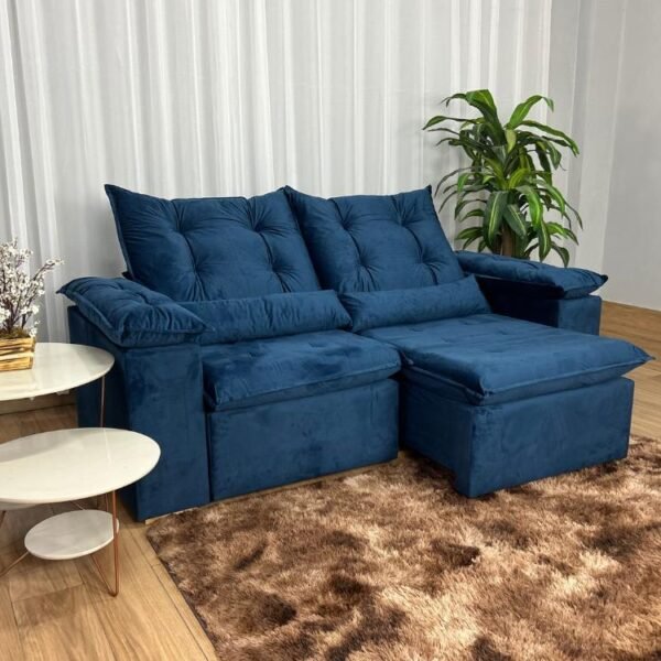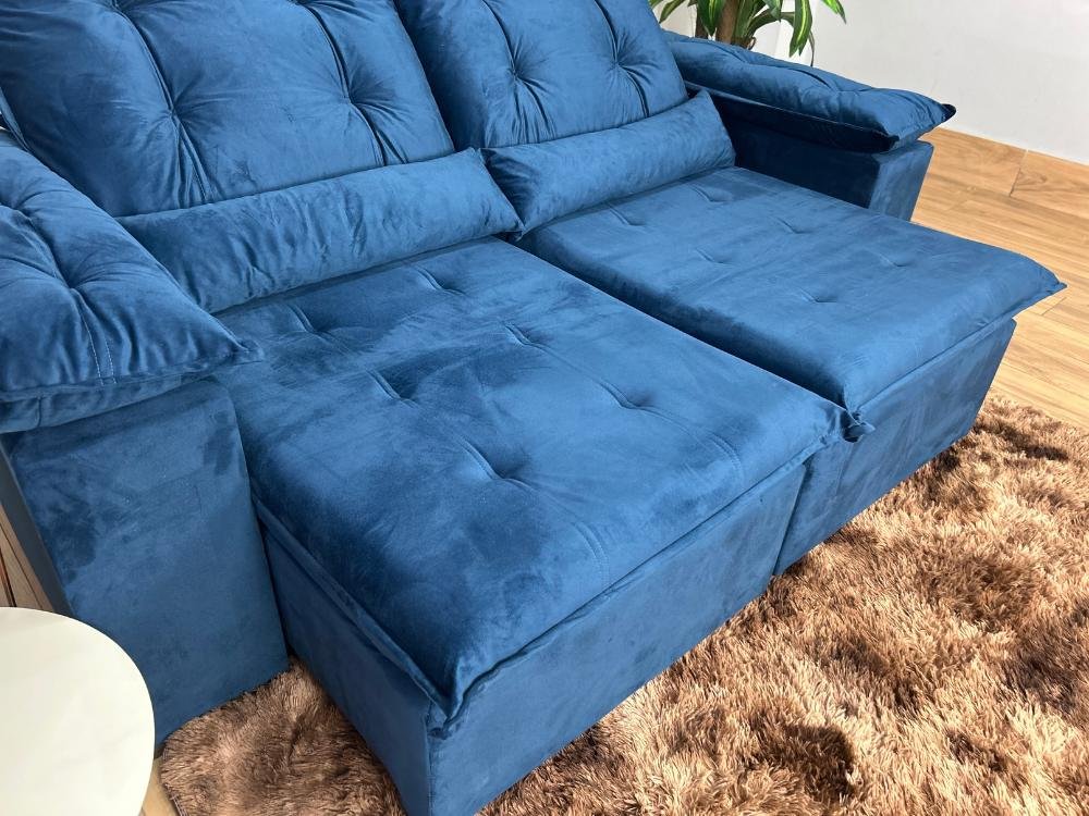 Sofá Retrátil Reclinável Atenas 2.00m – Azul Veludo