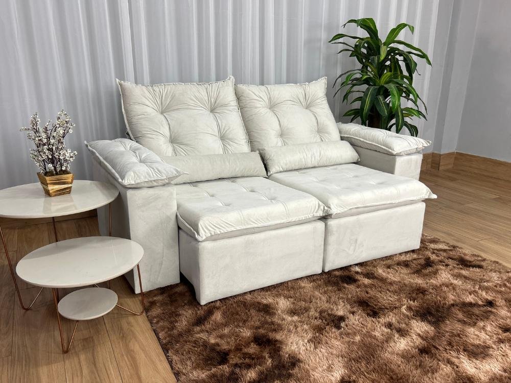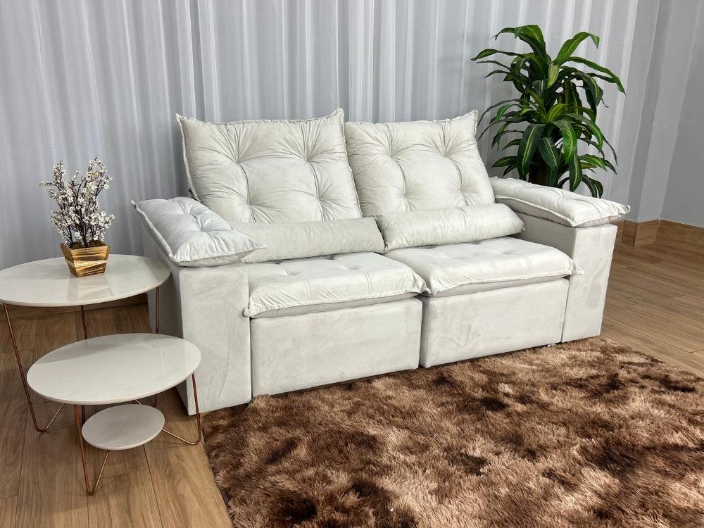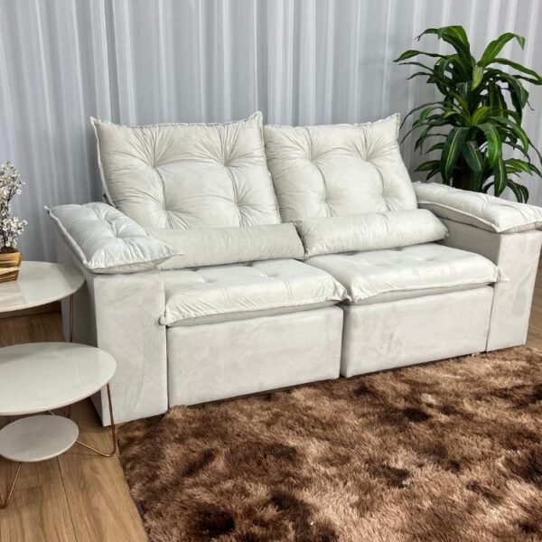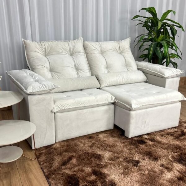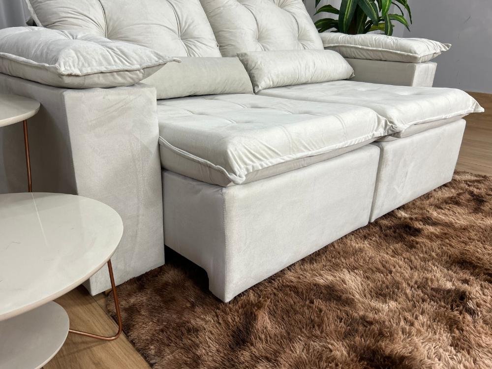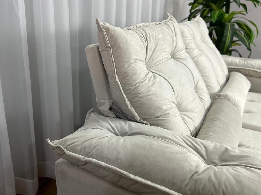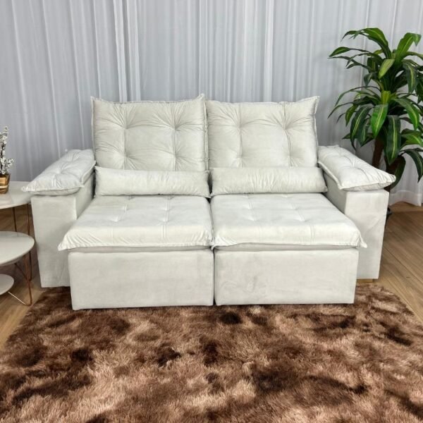 Sofá Retrátil Reclinável Atenas 2.00m – Bege Veludo