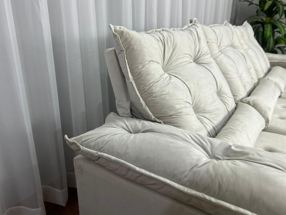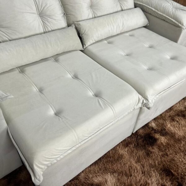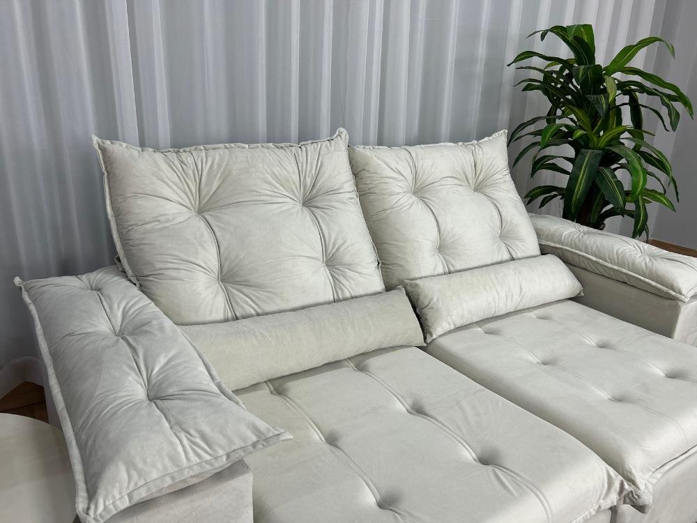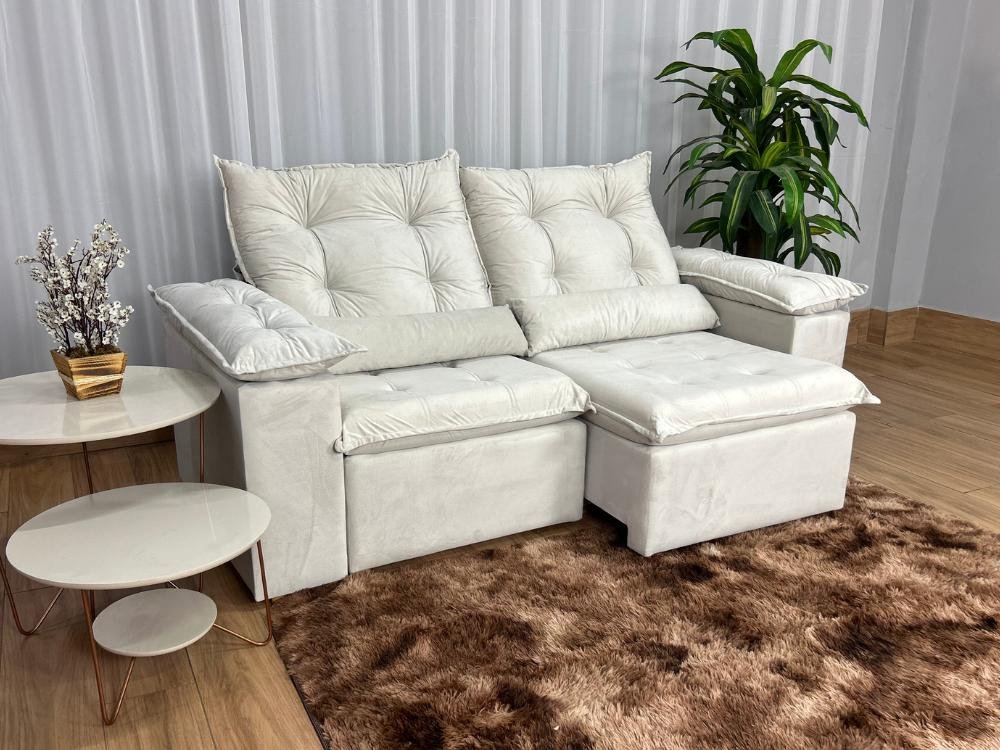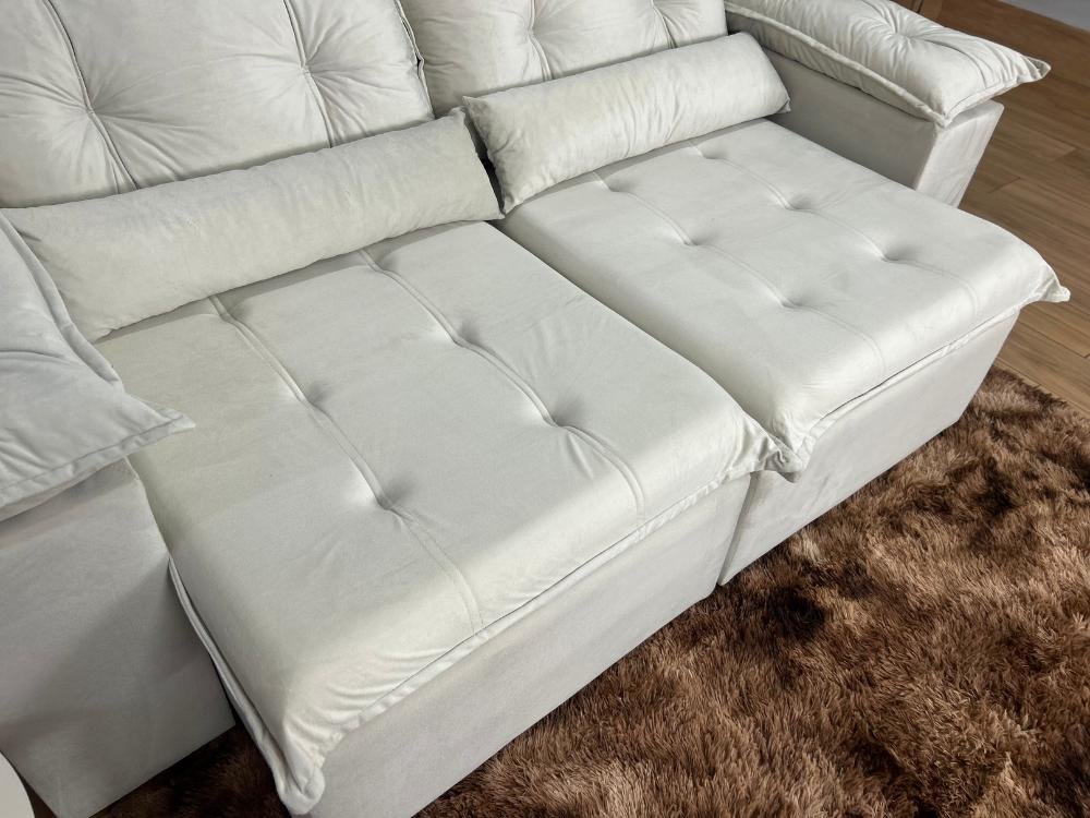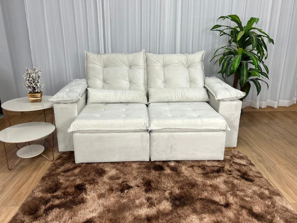 Sofá Retrátil Reclinável Atenas 2.00m – Bege Veludo