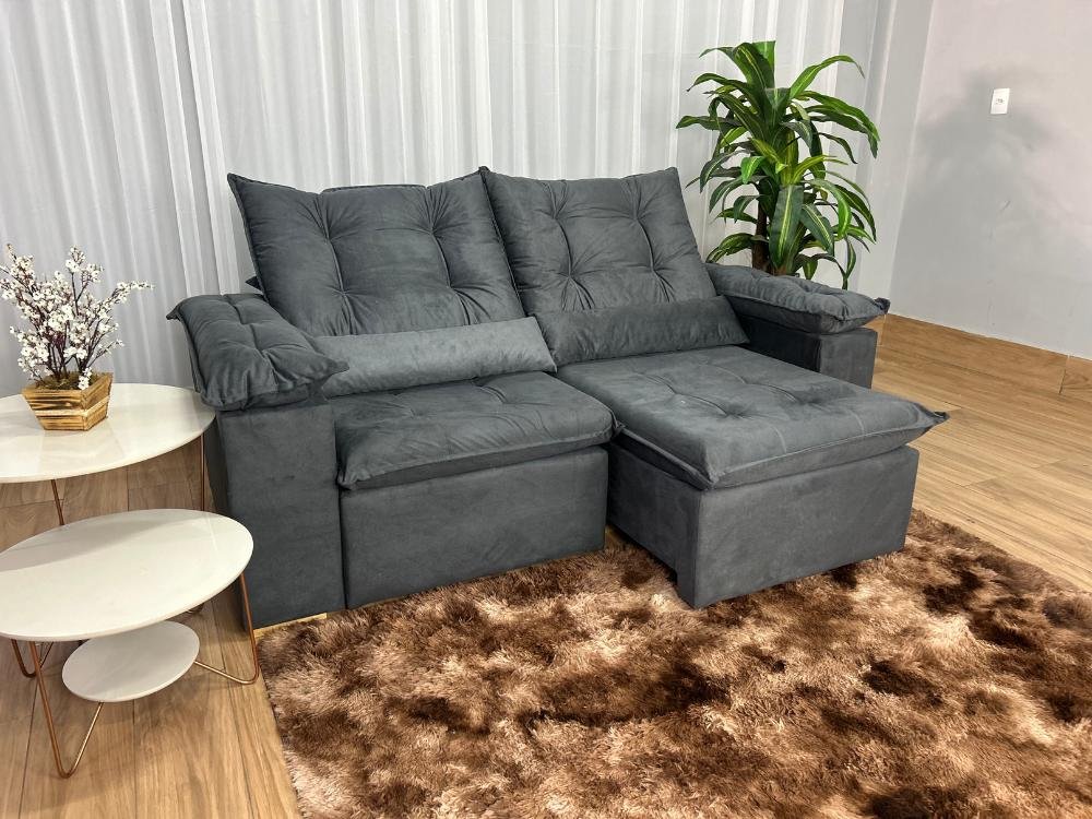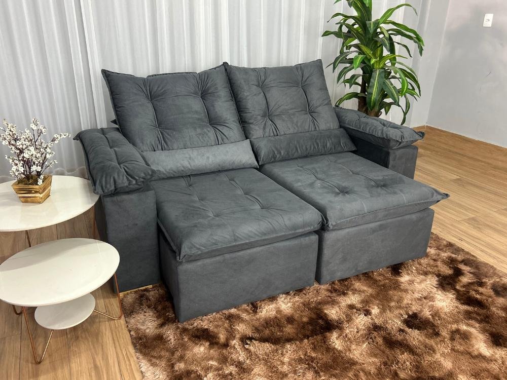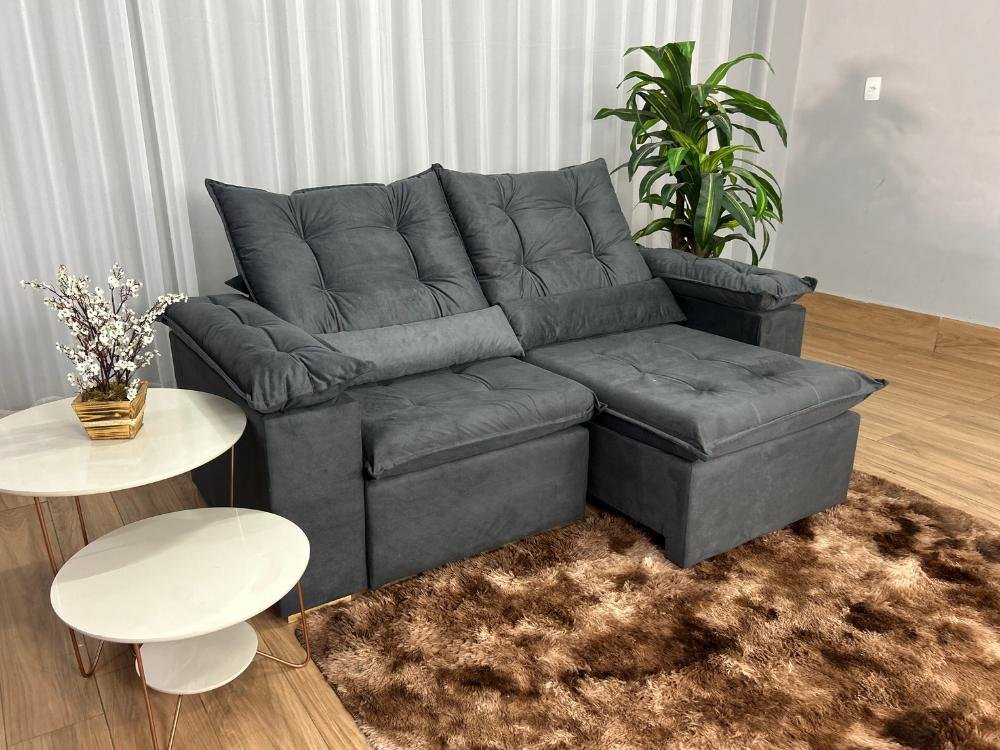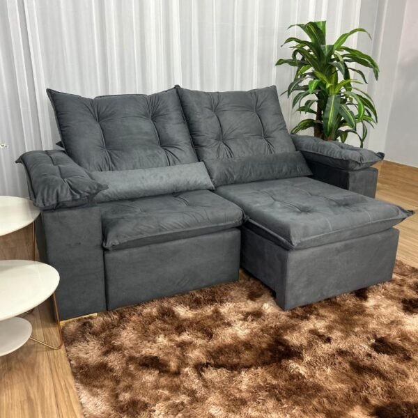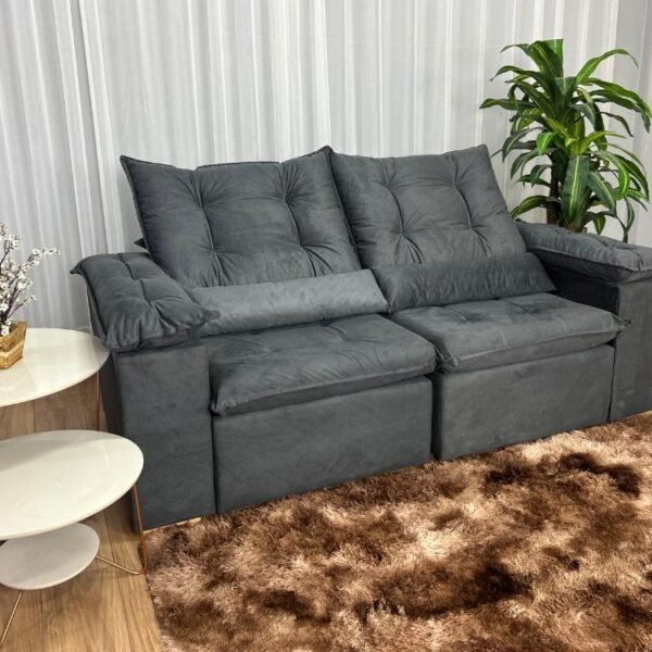 Sofá Retrátil Reclinável Atenas 2.00m – Cinza Veludo