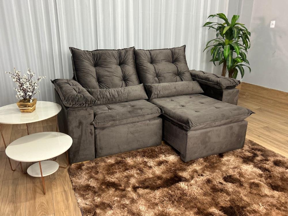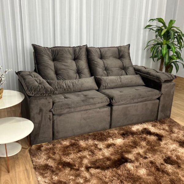 Sofá Retrátil Reclinável Atenas 2.00m – Marrom Veludo